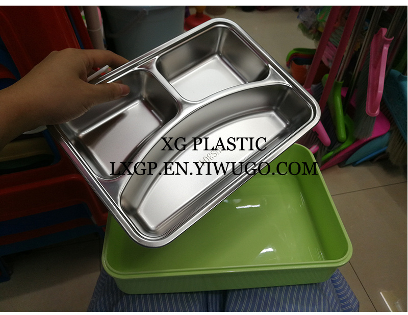 三格饭盒304不锈钢塑料饭盒便携午餐盒简约学生白领长方便当盒