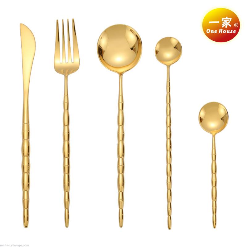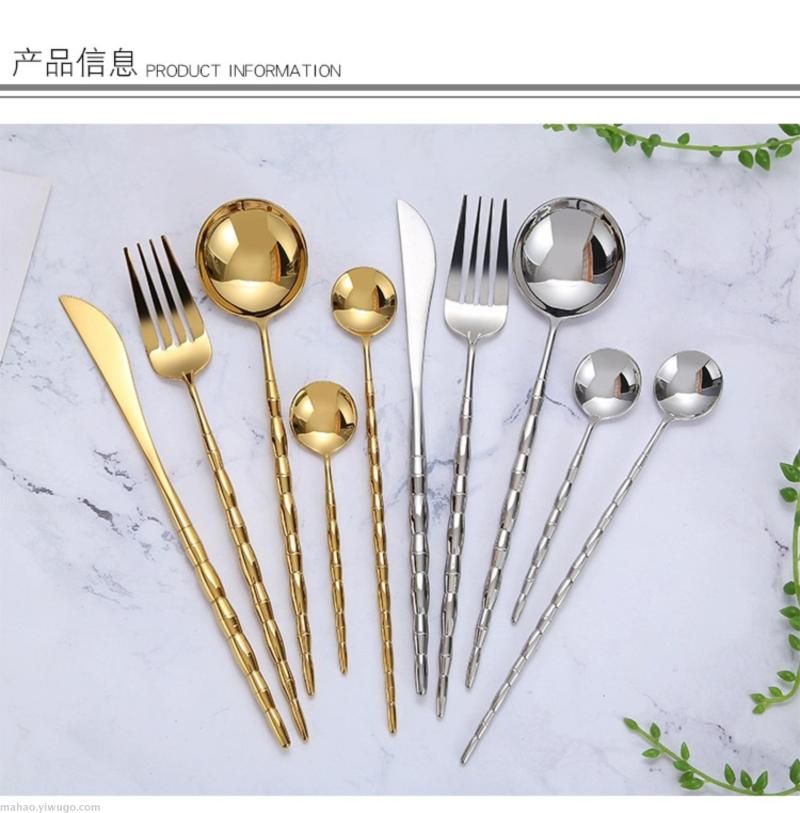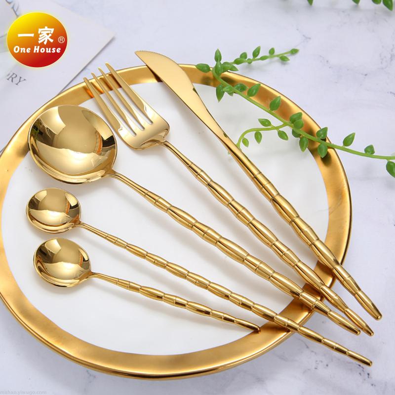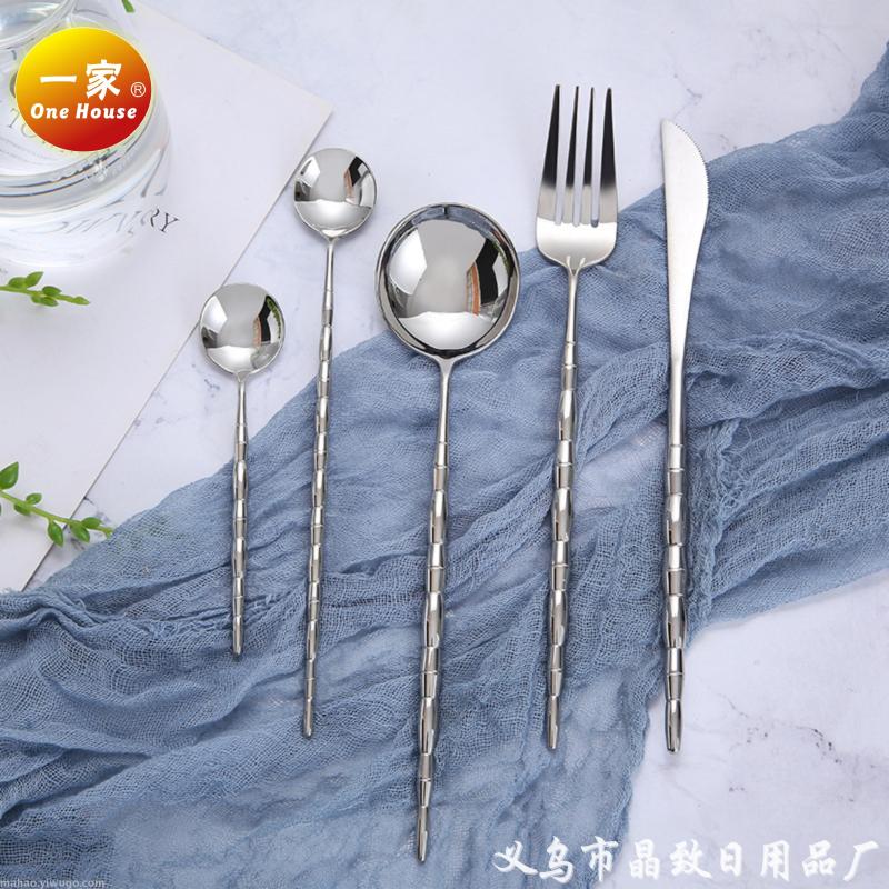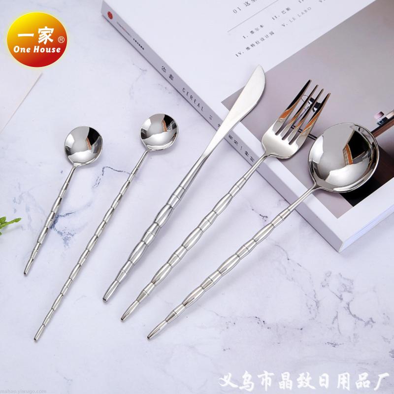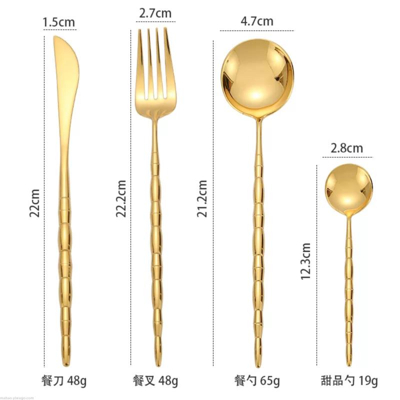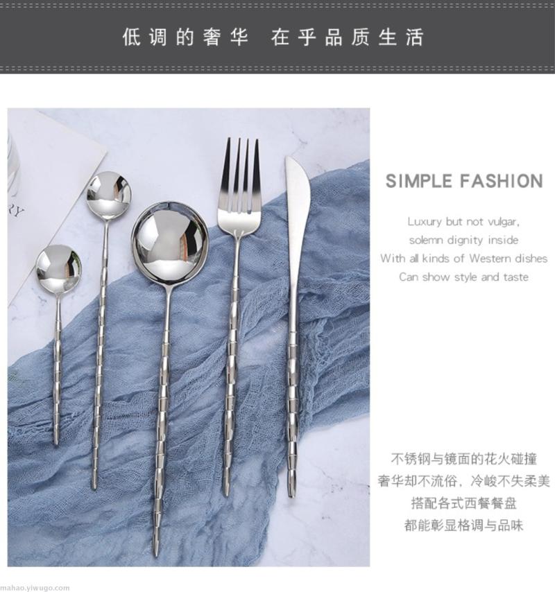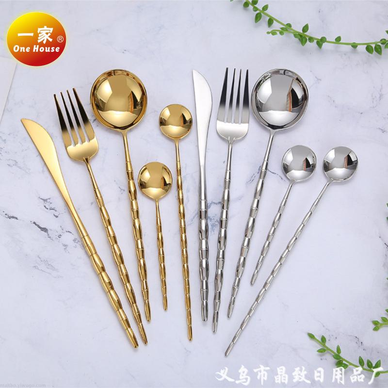 晶致竹节柄高档不锈钢刀叉勺酒店餐用实心加厚锻打餐具礼品盒套装