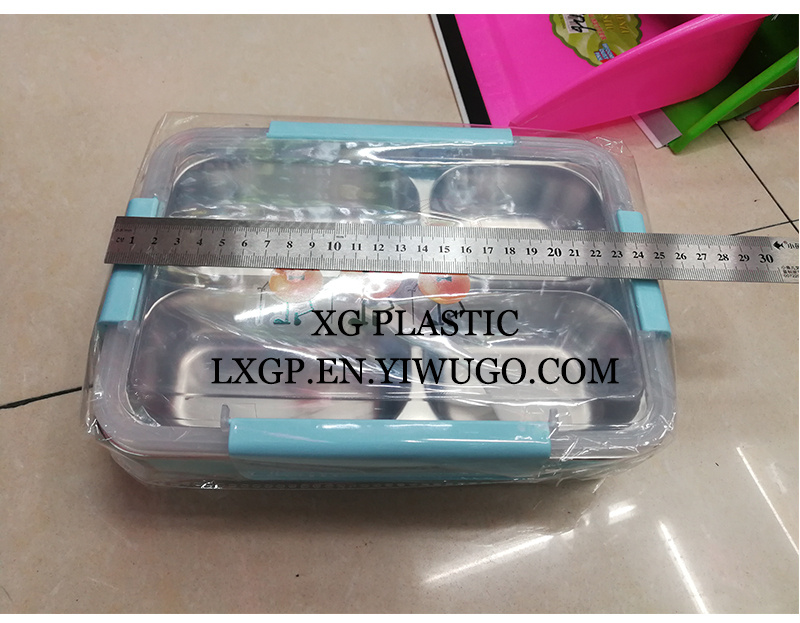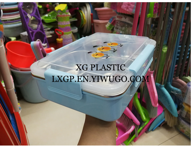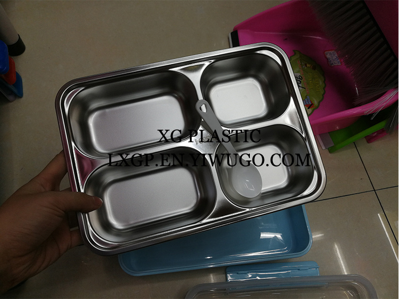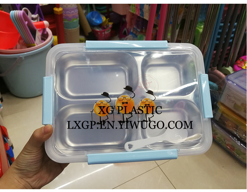四格饭盒304不锈钢塑料饭盒便携午餐盒简约学生白领长方便当盒