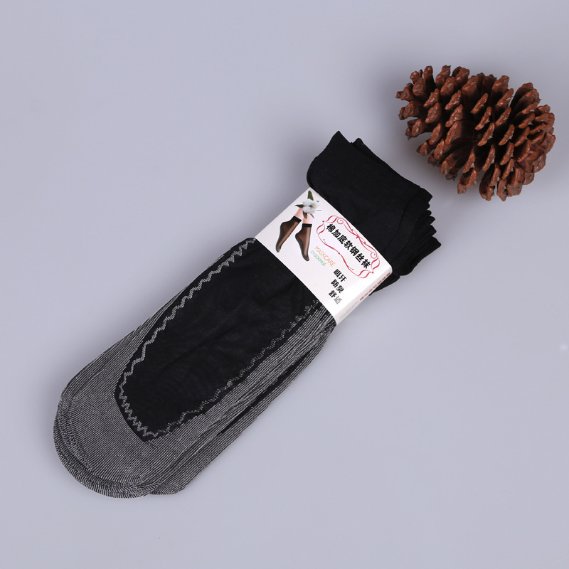 棉底丝袜女短丝袜女防滑四季款棉底袜中筒袜钢丝袜一件批发