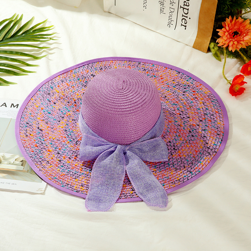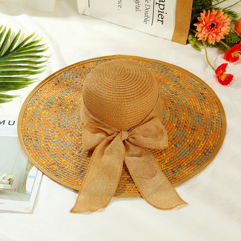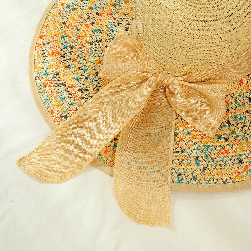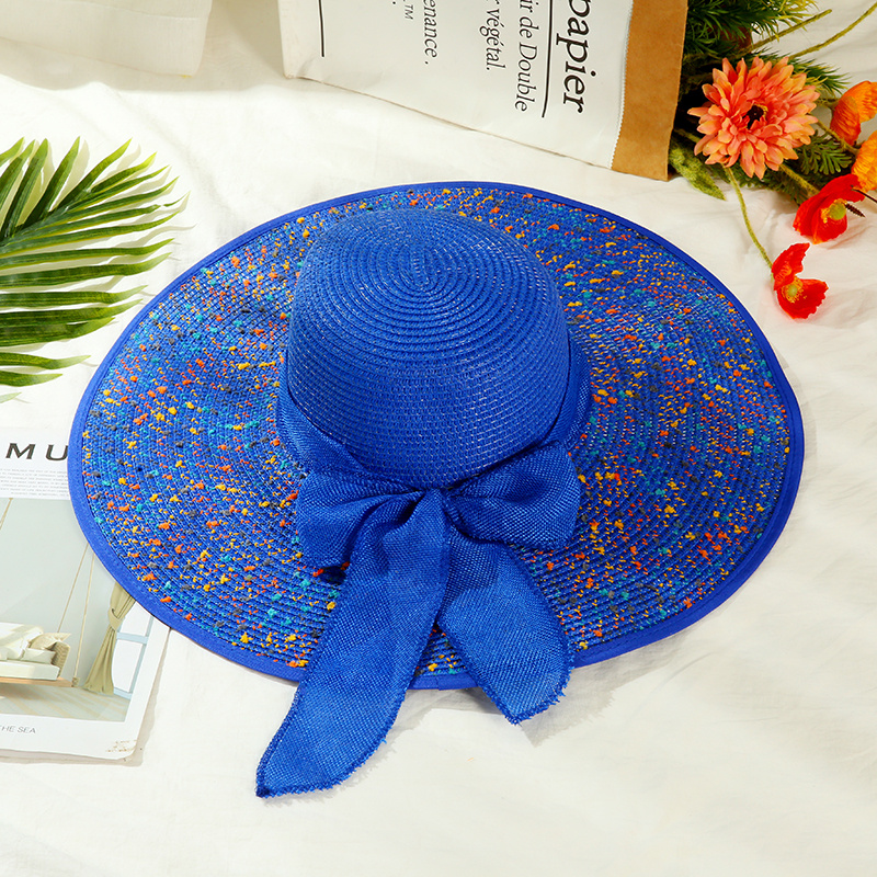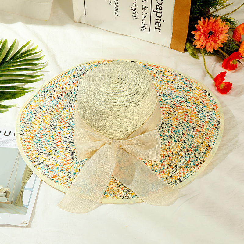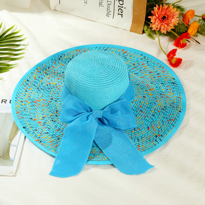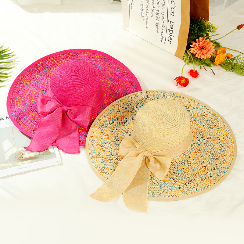 2020夏款女士大沿彩点带蝴蝶结草帽