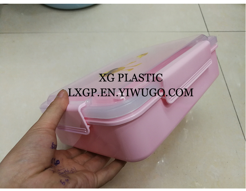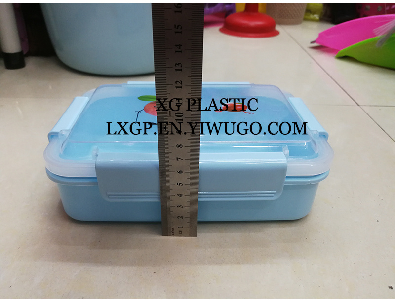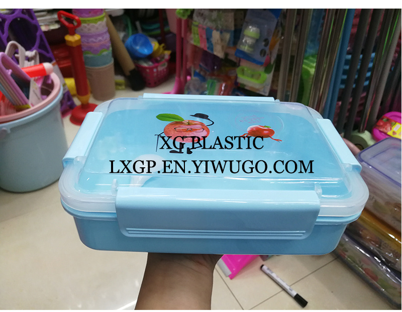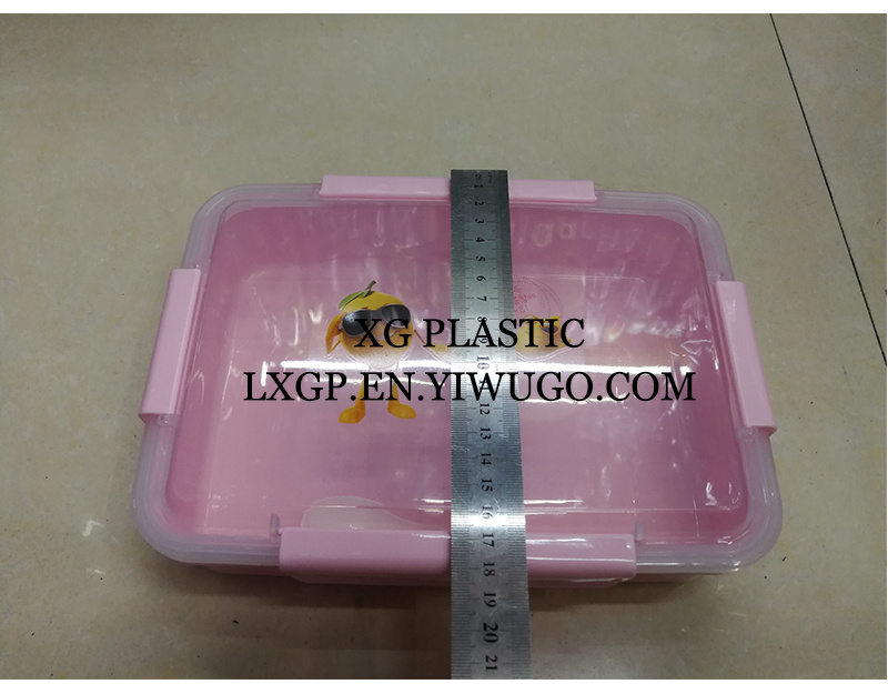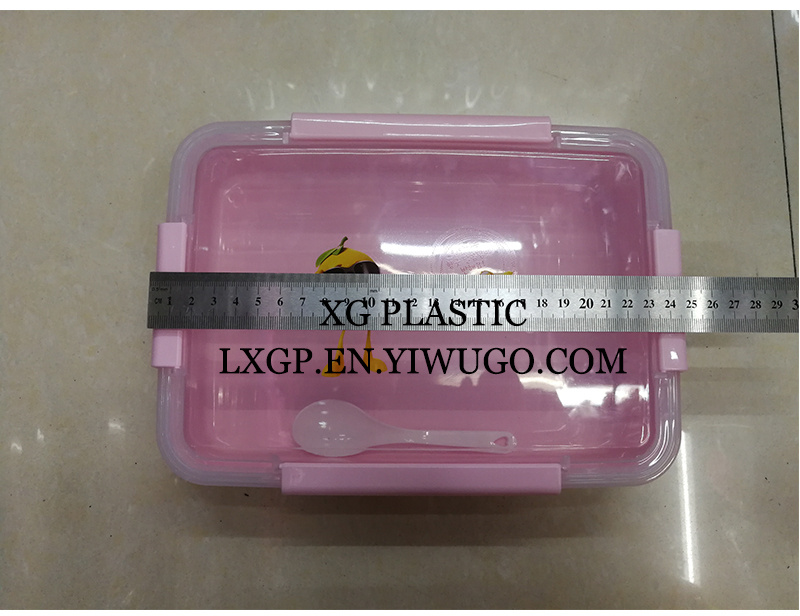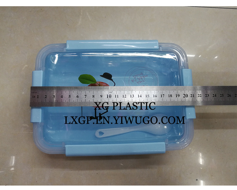 塑料保鲜盒饭盒带勺长方食品收纳盒便当盒简约时尚厨房冰箱密封盒