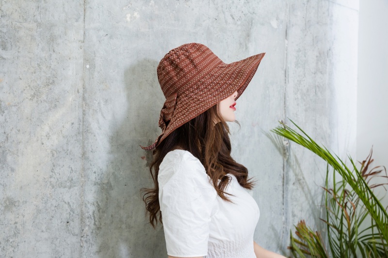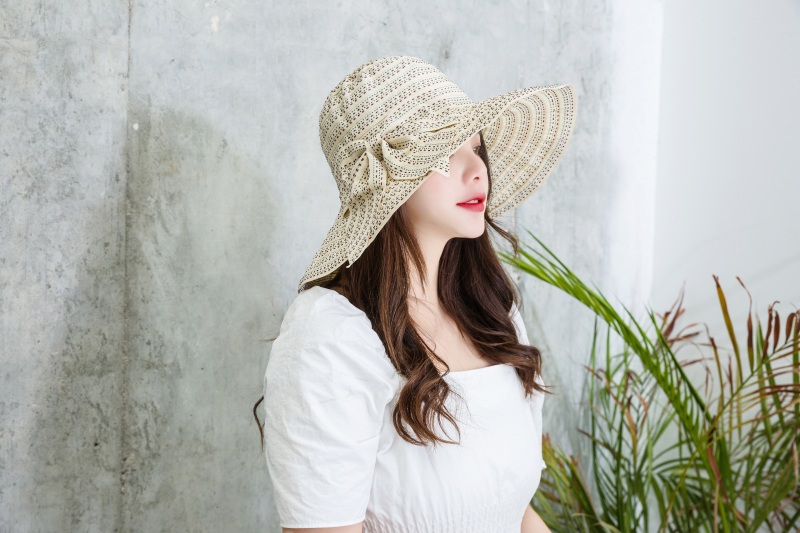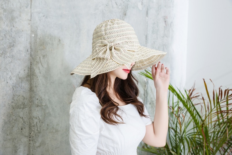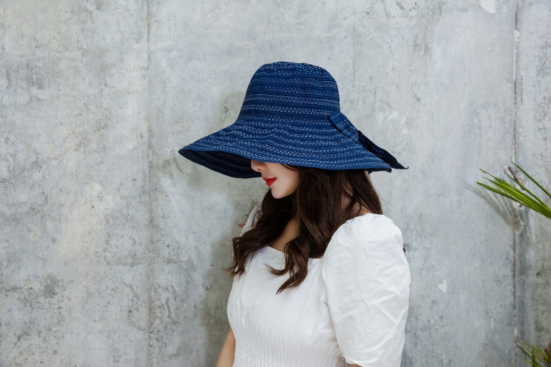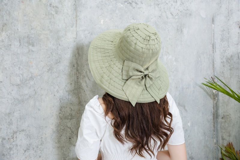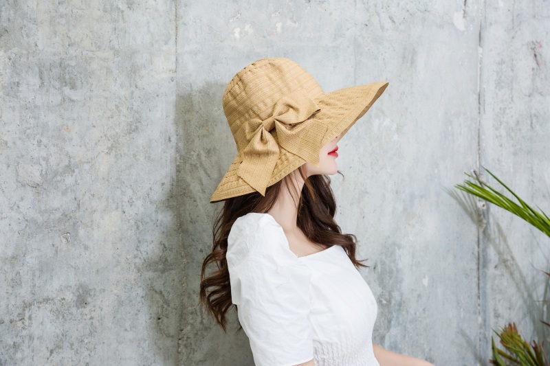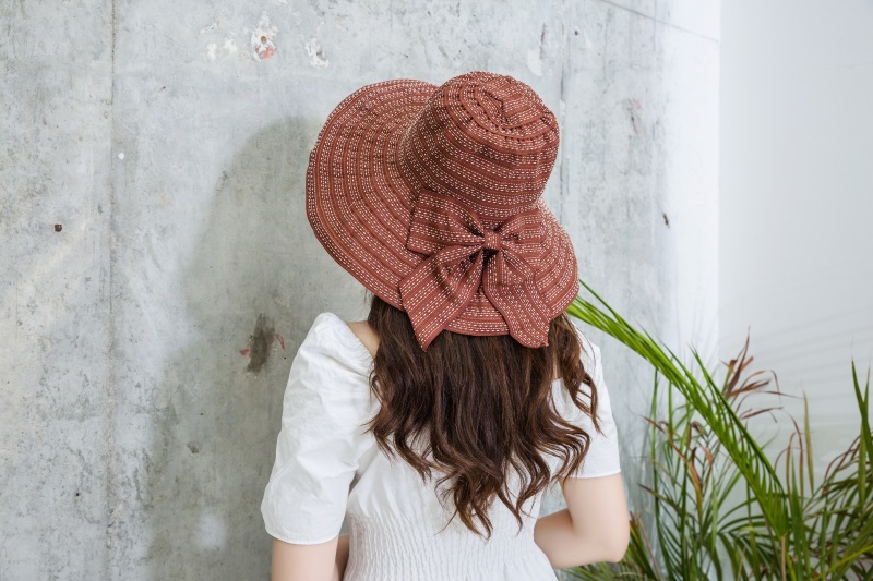 2020夏款女士织带大沿蝴蝶结遮阳时尚布帽