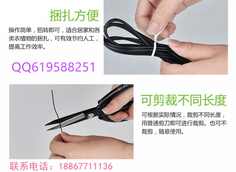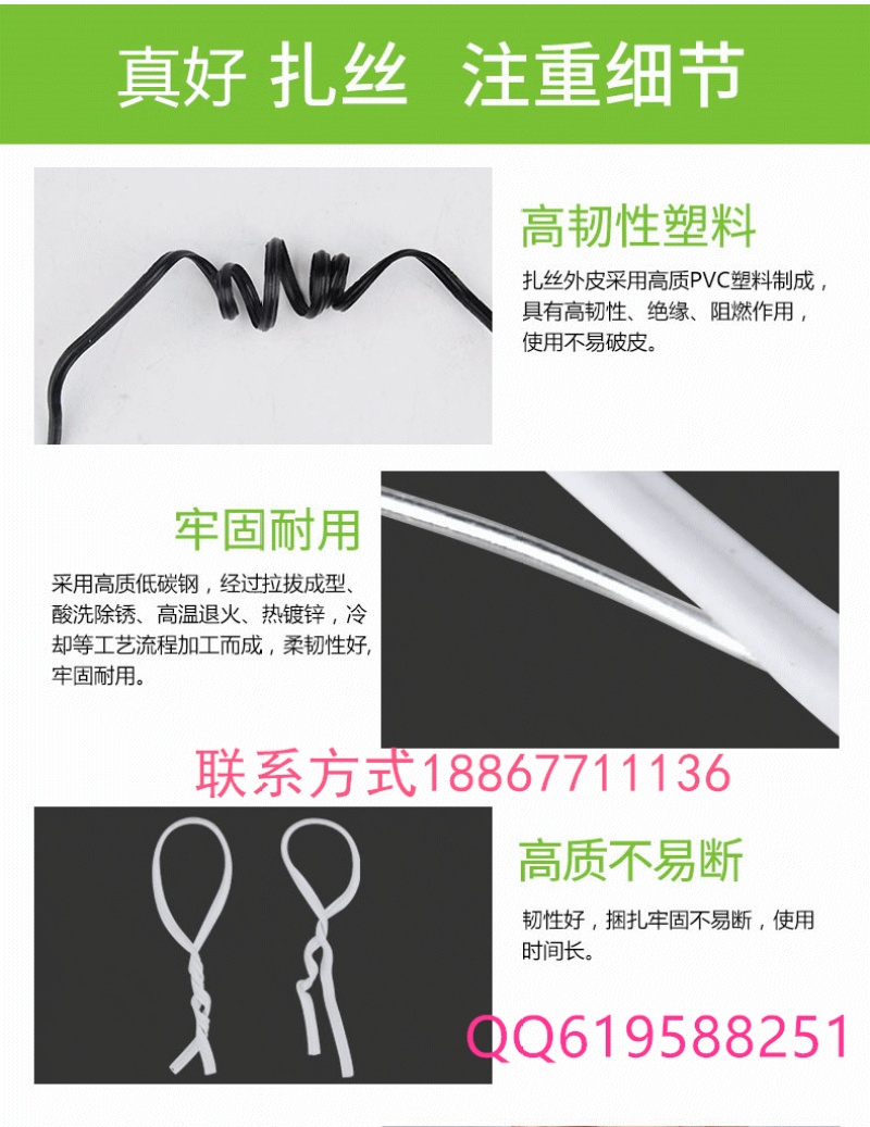 葡萄电镀锌扎丝0.9/1.2/1.5MM包塑扎线, 扎带白色绑带捆绳