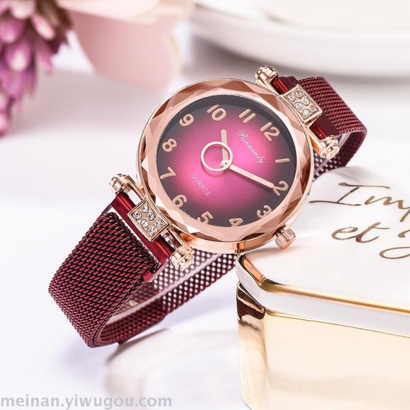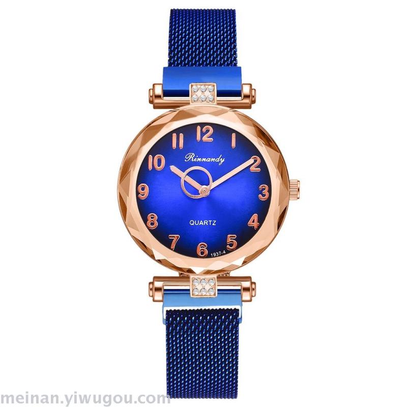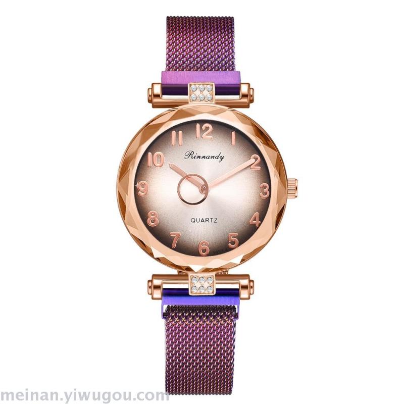 新款水晶面配色创意磁铁扣米兰带女士数字面手表