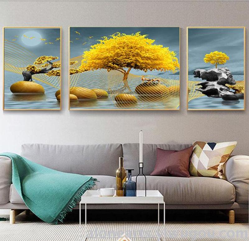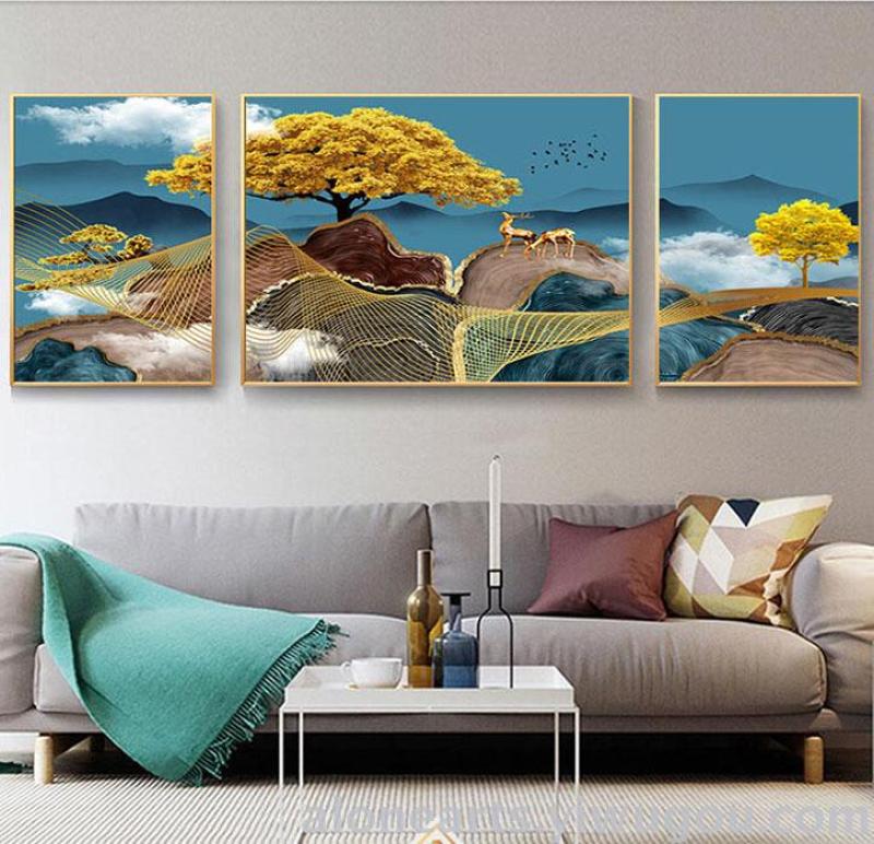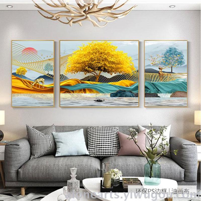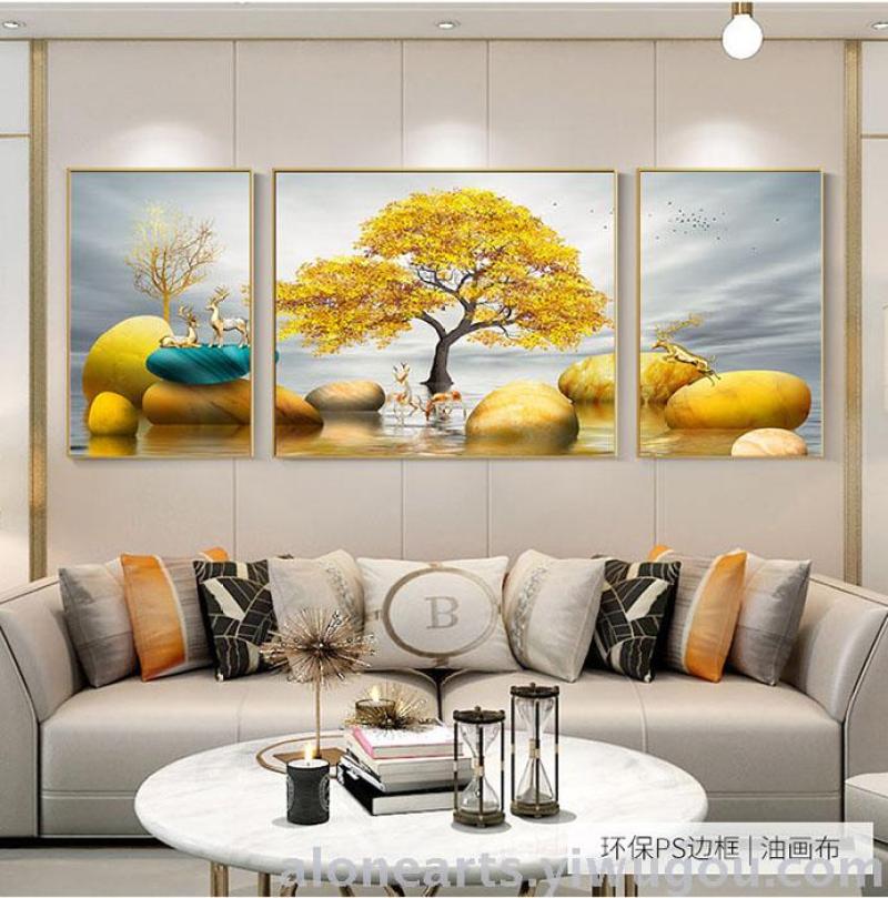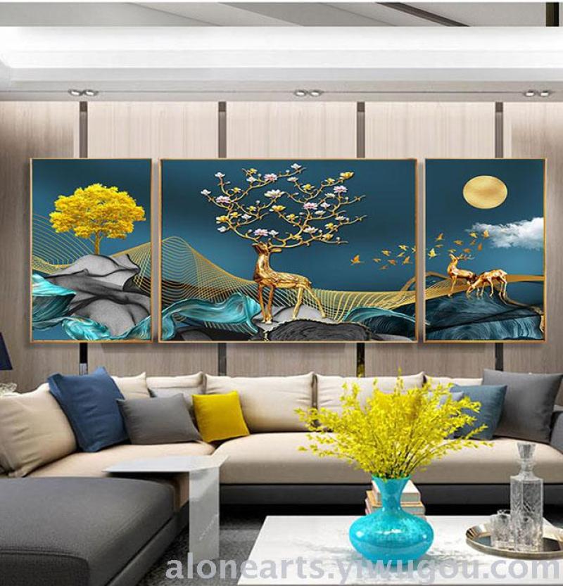 大气轻奢三联画客厅装饰画沙发背景墙画客厅挂画晶瓷晶钻铝合金画