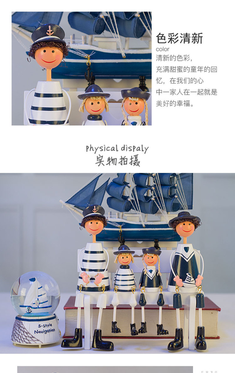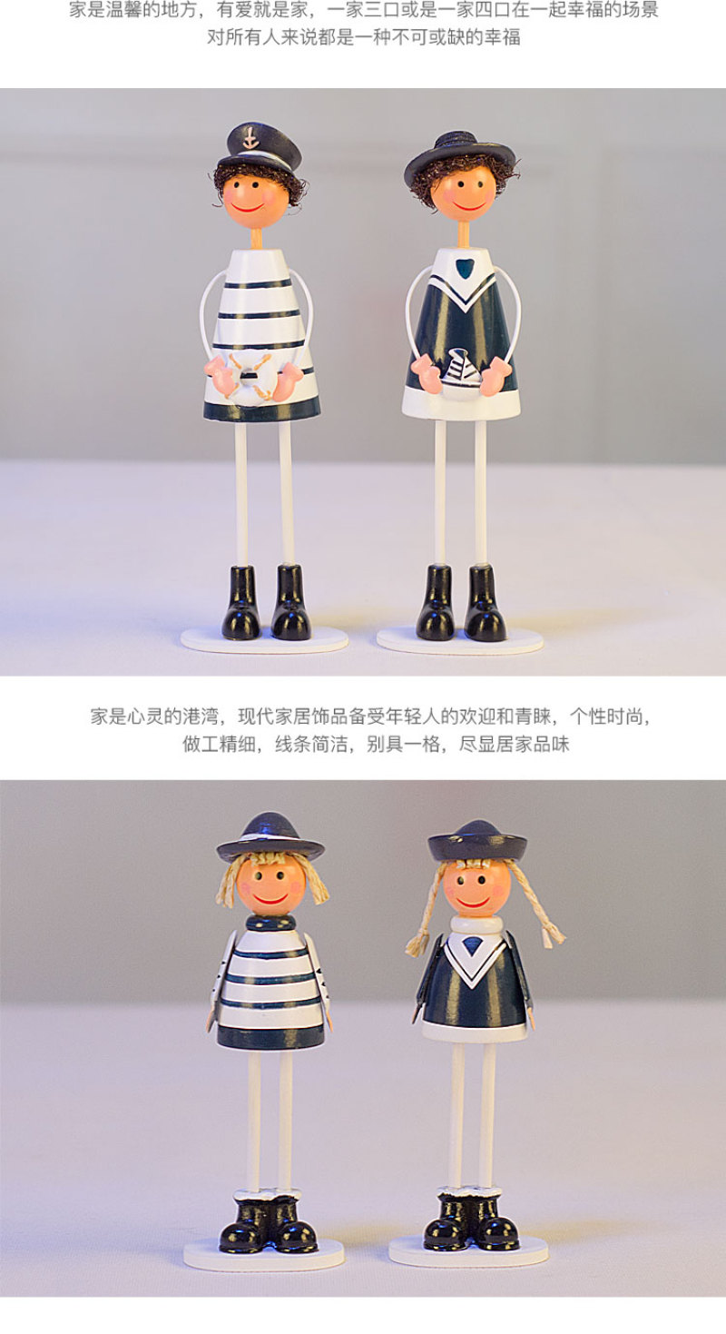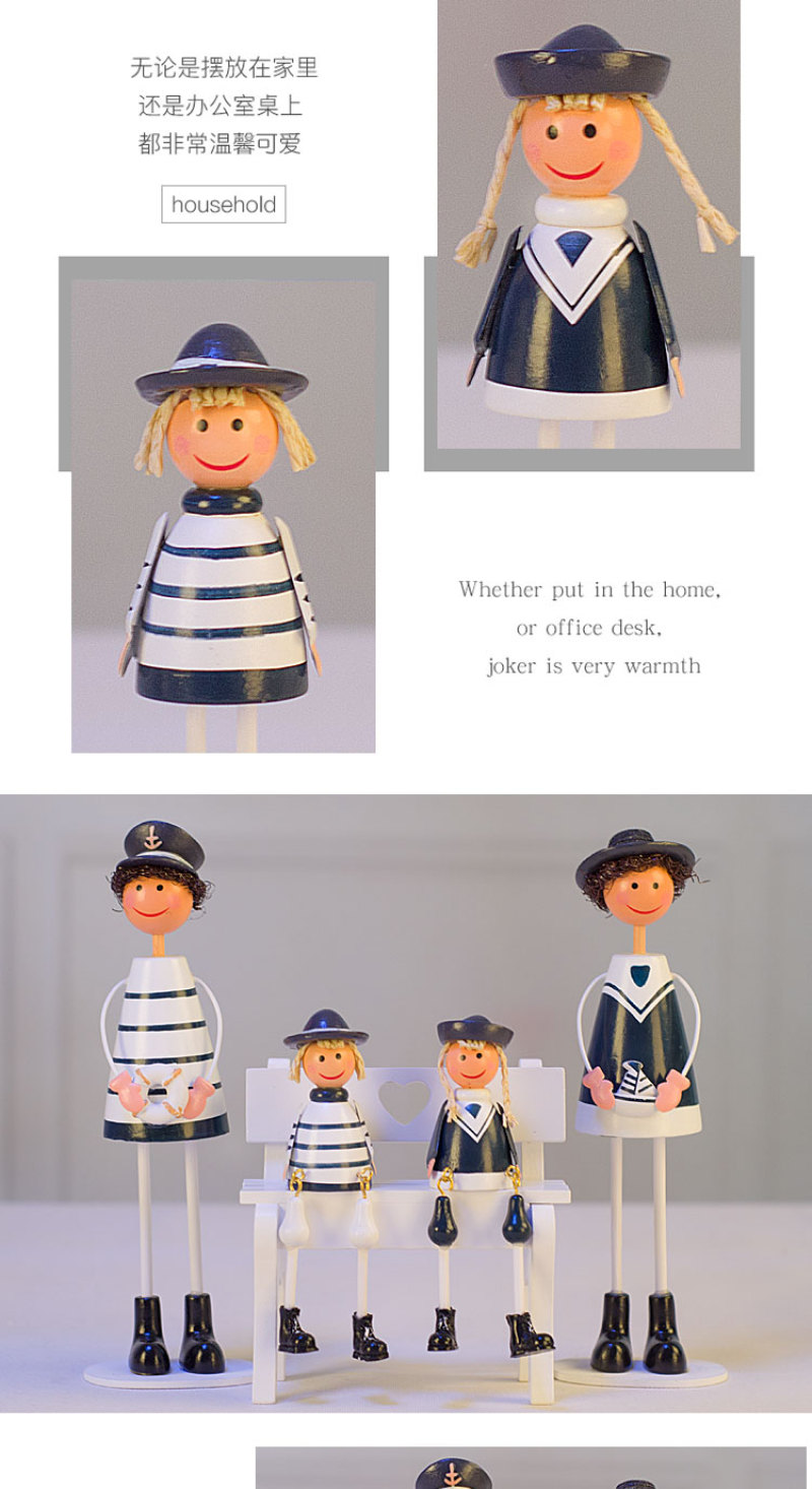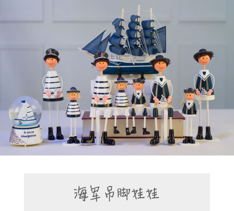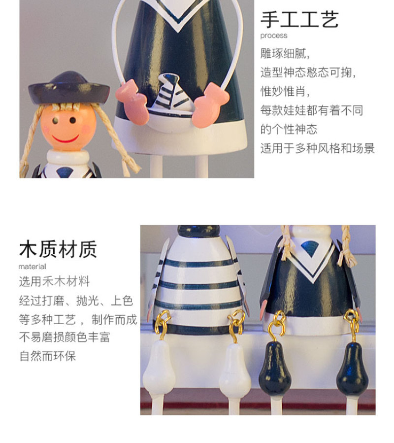 俊恒工艺厂家直销海军吊脚娃娃蓝色地中海风格家居装饰木质工艺品