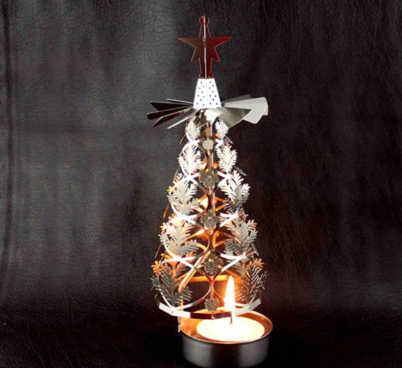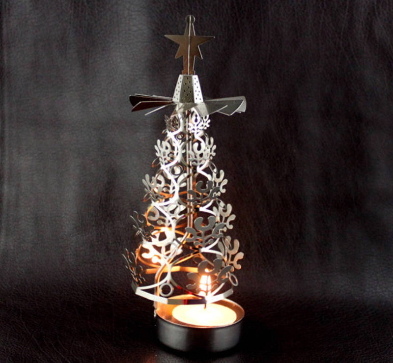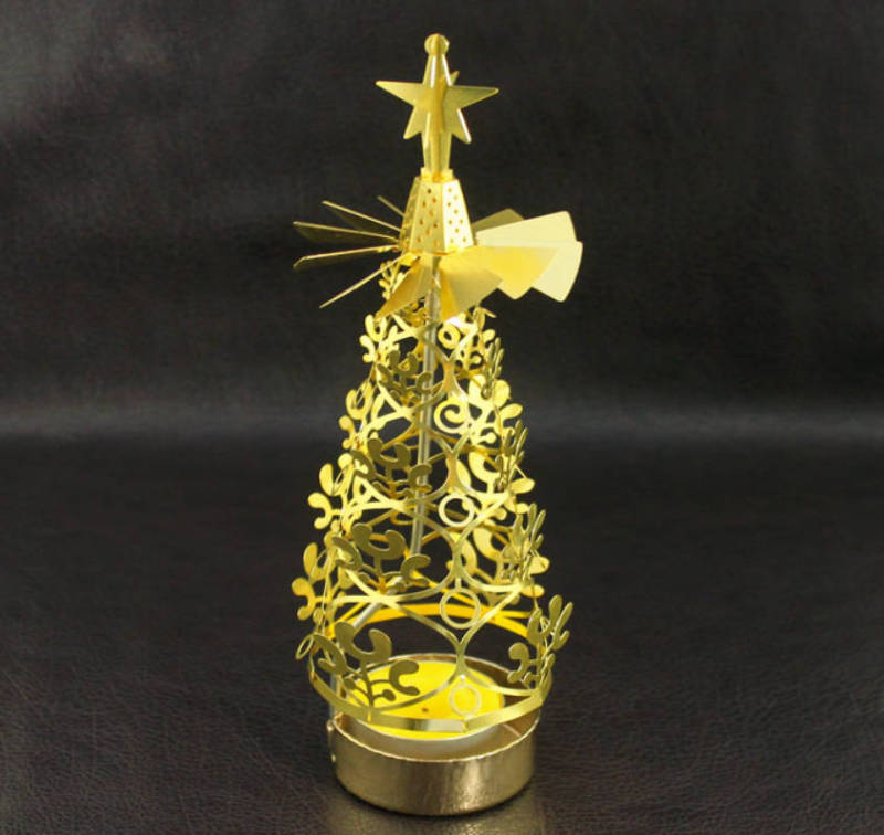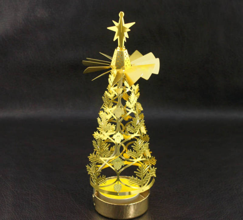 外贸专供圣诞风灯镂空制作金银款式可自动旋转铜工艺品
