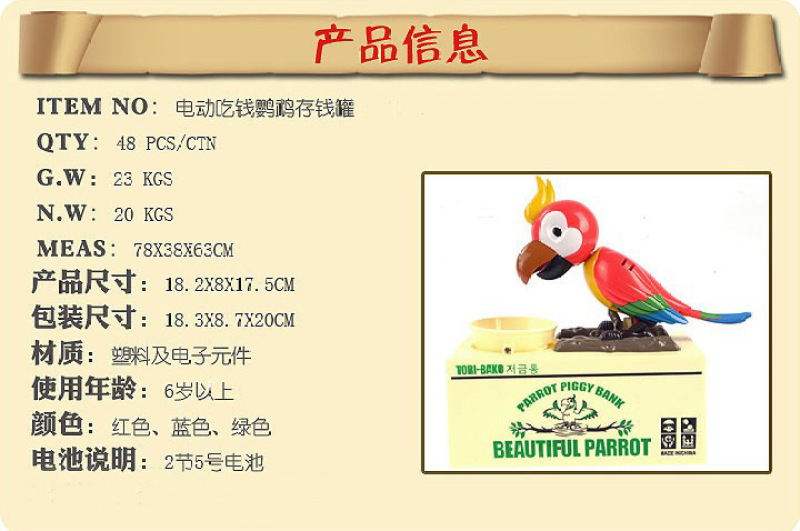 小鸟钱存钱罐 贪贪财鸟鹦鹉储蓄罐 创意电动搞笑存钱罐礼品