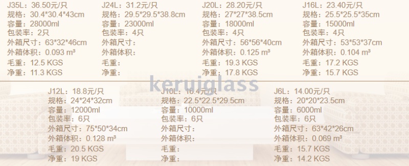 创丰玻璃泡酒坛自酿罐梅酒瓶系列J35L/J28L/J24L/J20L/J16L/J12L/J10L/J6L