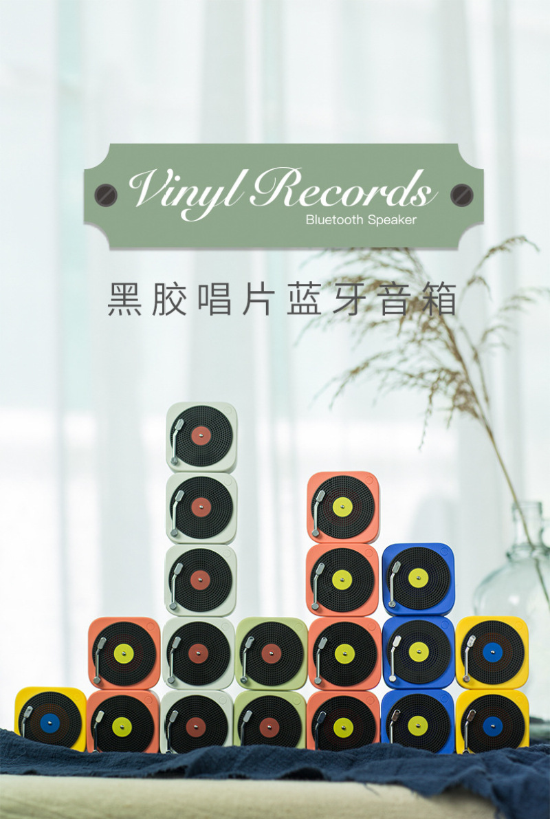 创意黑胶复古唱片机蓝牙音响无线迷你便携多功能复古CD唱片音箱