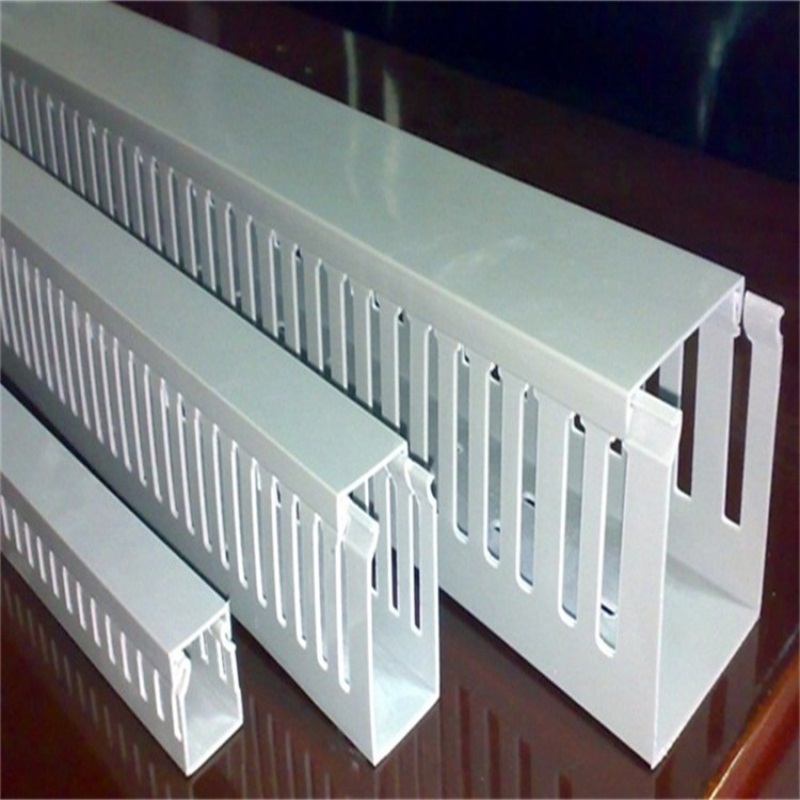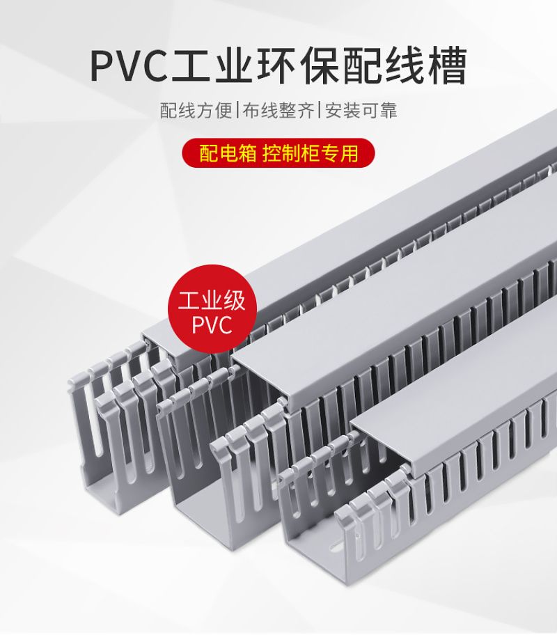 本产品在1200V及以下的电气设备中对敷设其中的导线起机械防护和电气保护作用。使用此产品后,配线方便,布线整齐,美观,安装可靠,便于查找、维修和调换线路。专业生产各规格PVC阻燃线槽,,
