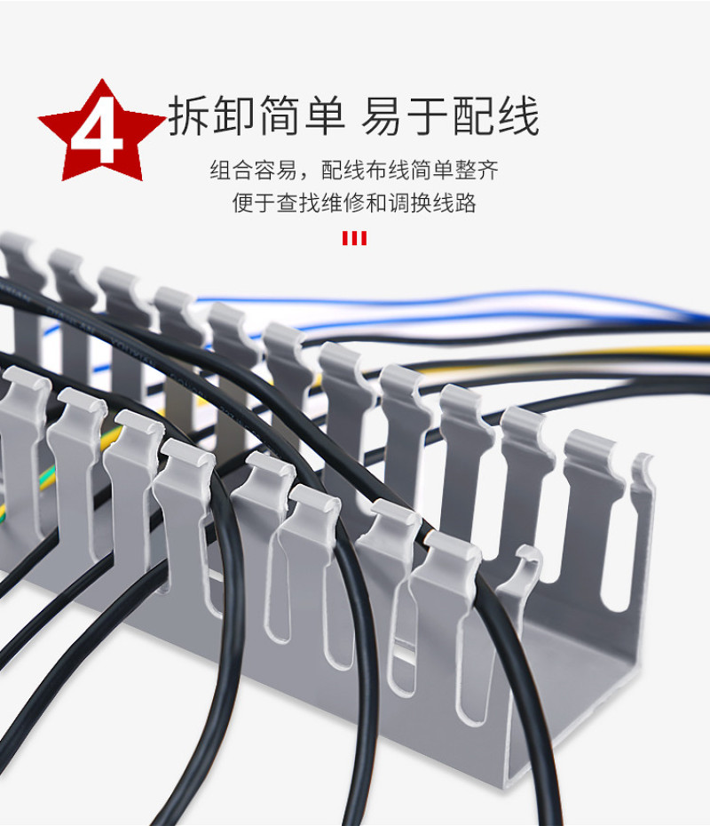 本产品在1200V及以下的电气设备中对敷设其中的导线起机械防护和电气保护作用。使用此产品后,配线方便,布线整齐,美观,安装可靠,便于查找、维修和调换线路。专业生产各规格PVC阻燃线槽,,