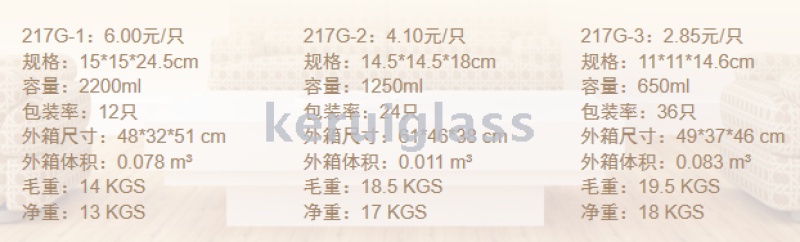 创丰玻璃健康多用瓶玻璃盖储物罐密封罐2200ML/1250ML/650ML