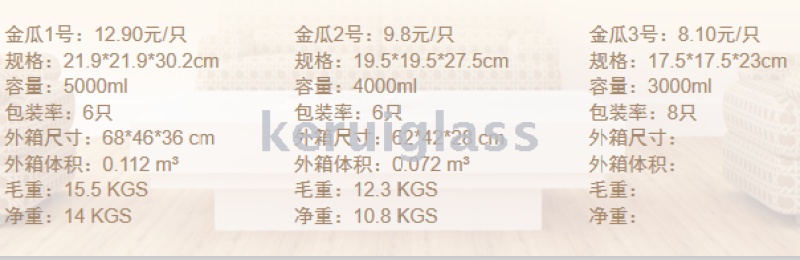 创丰玻璃健康多用瓶玻璃盖储物罐密封罐金瓜系列5000ML/4000ML/3000ML