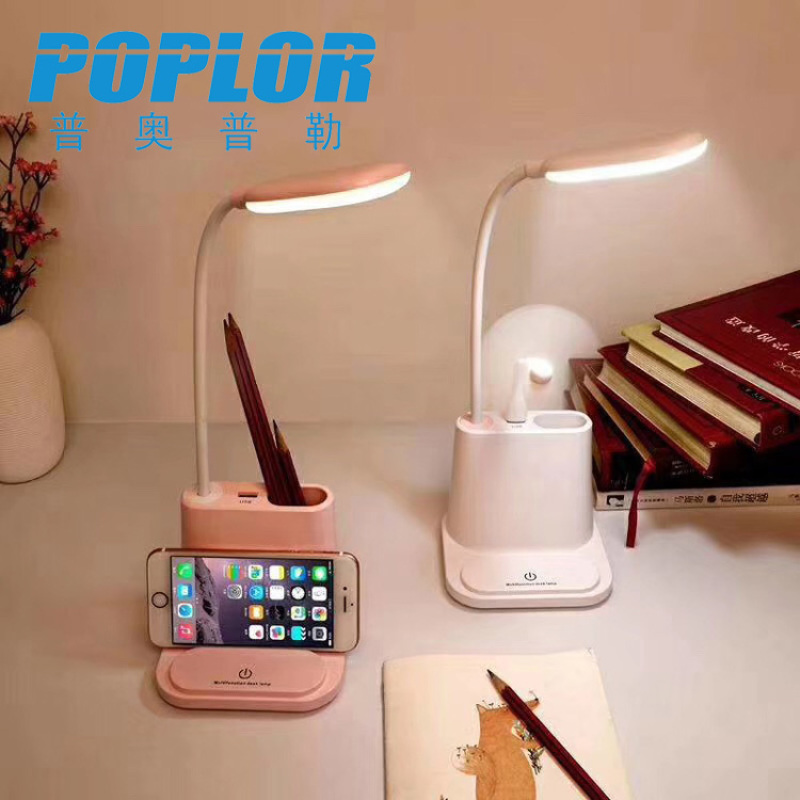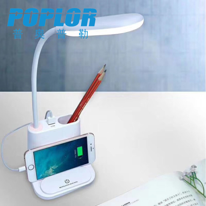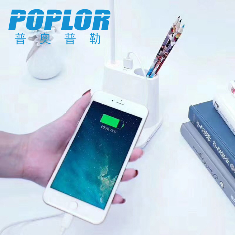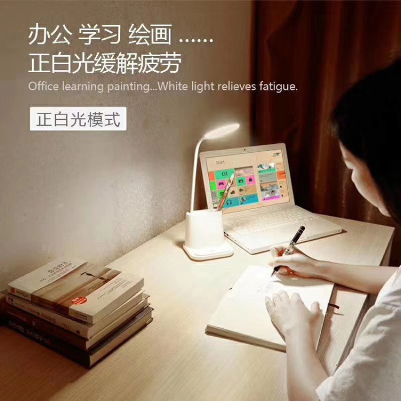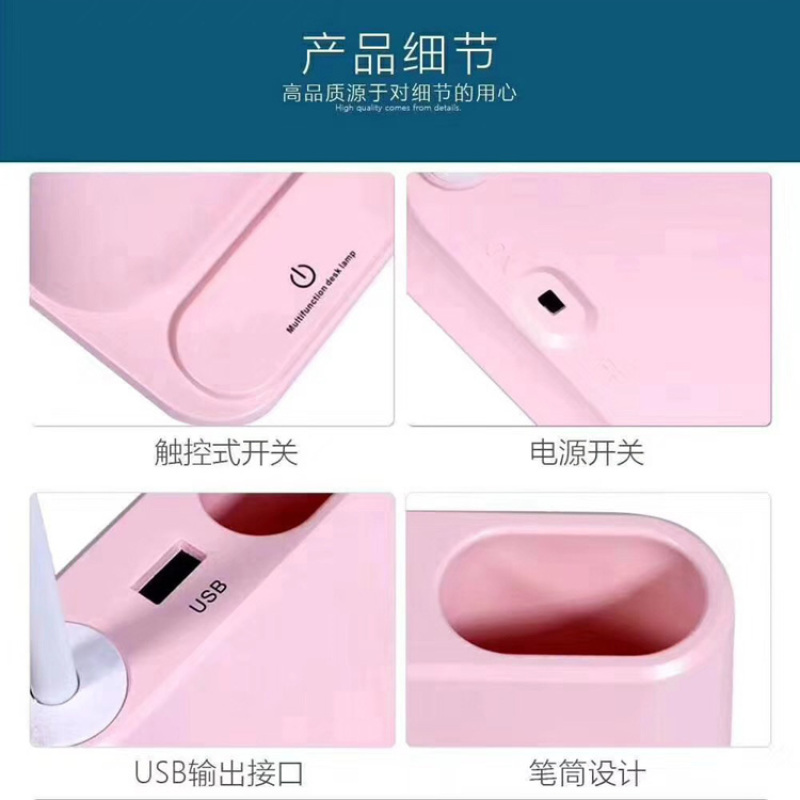 LED三段调光台灯 5W定制礼品智能学生台灯 带USB充电功能带风扇
