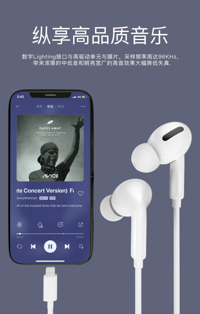 新款苹果三代有线lightning蓝牙耳机适用苹果手机入耳式音乐耳机