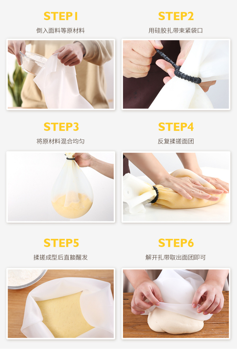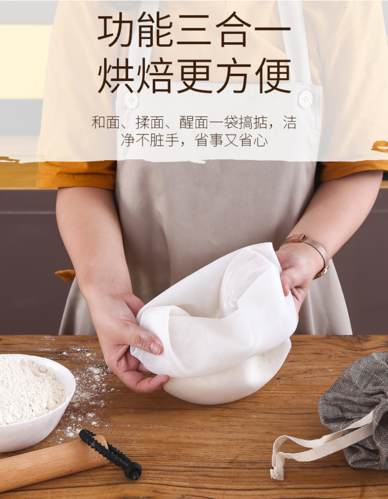 日用 厨房揉面袋 硅胶和面袋 保鲜醒袋发面袋 配扎绳 烘焙工具