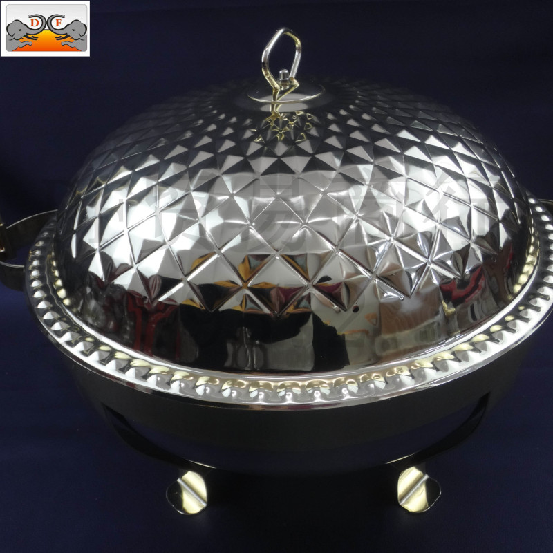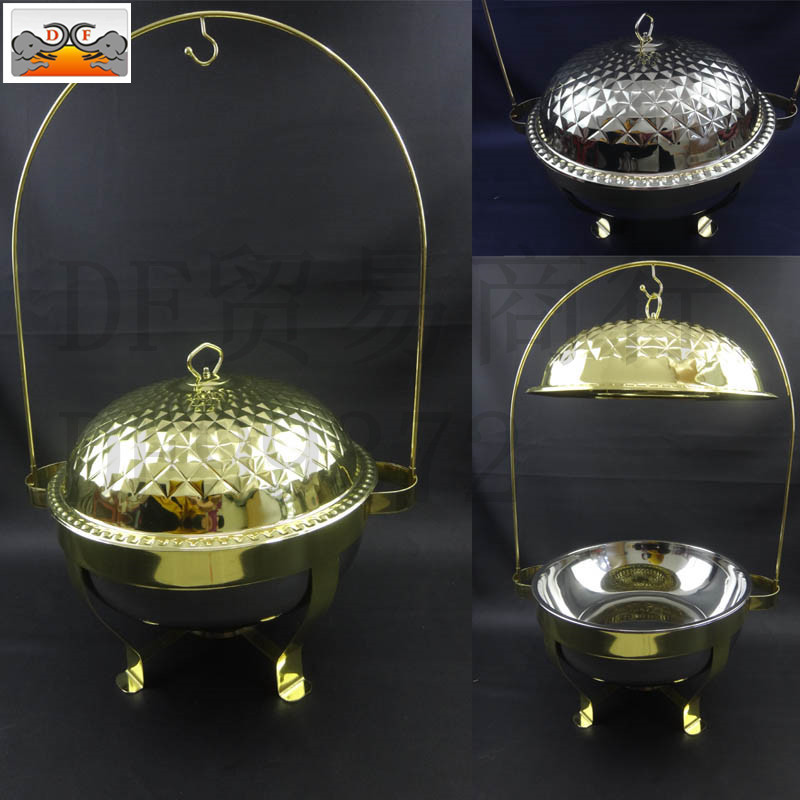 DF99372不锈钢厨房用品 百合钻石镀金吊盖圆自助餐炉