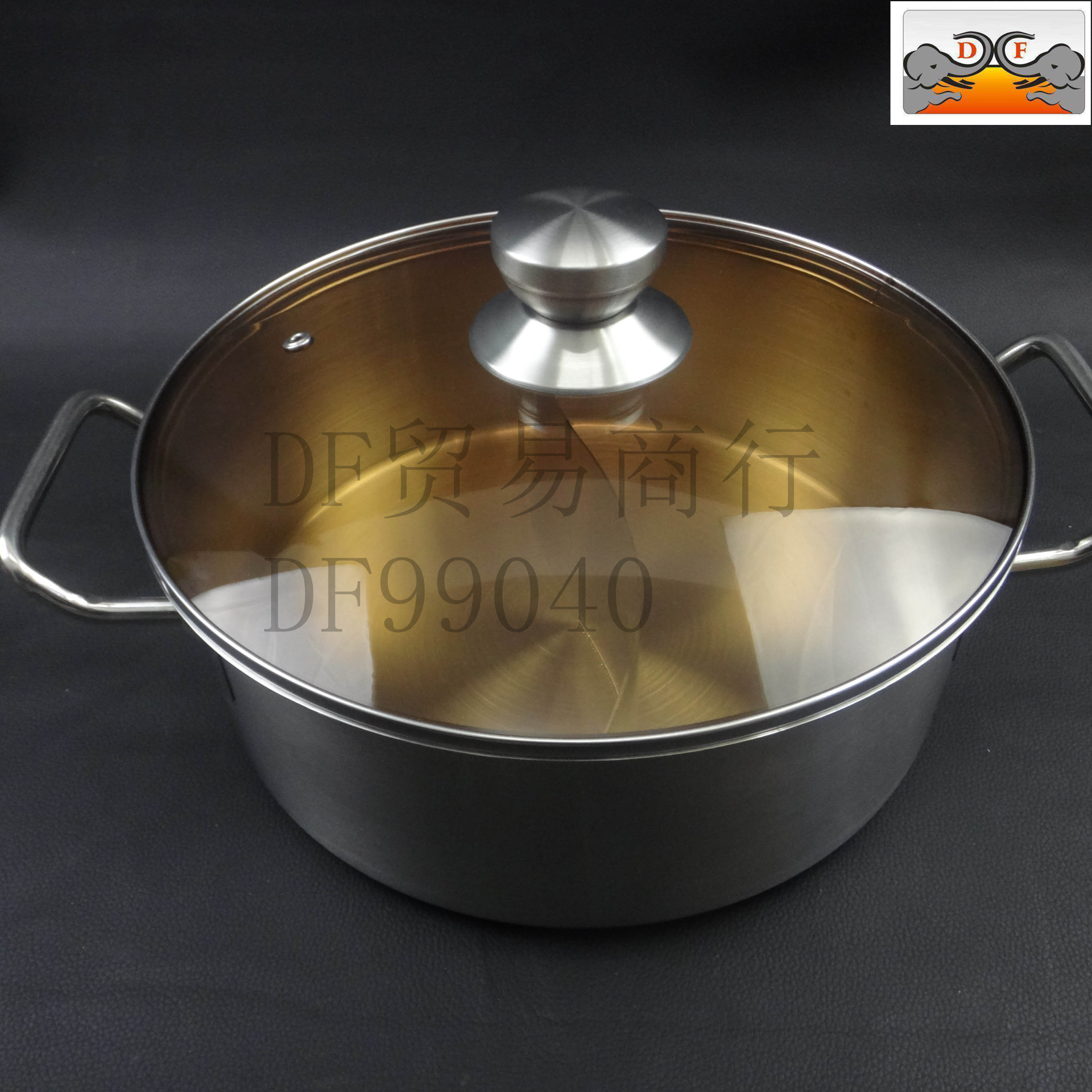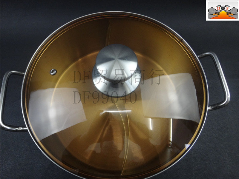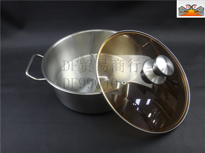 DF99040 DF Trading House不锈钢复底特厚玻璃盖火锅厨房酒店用品