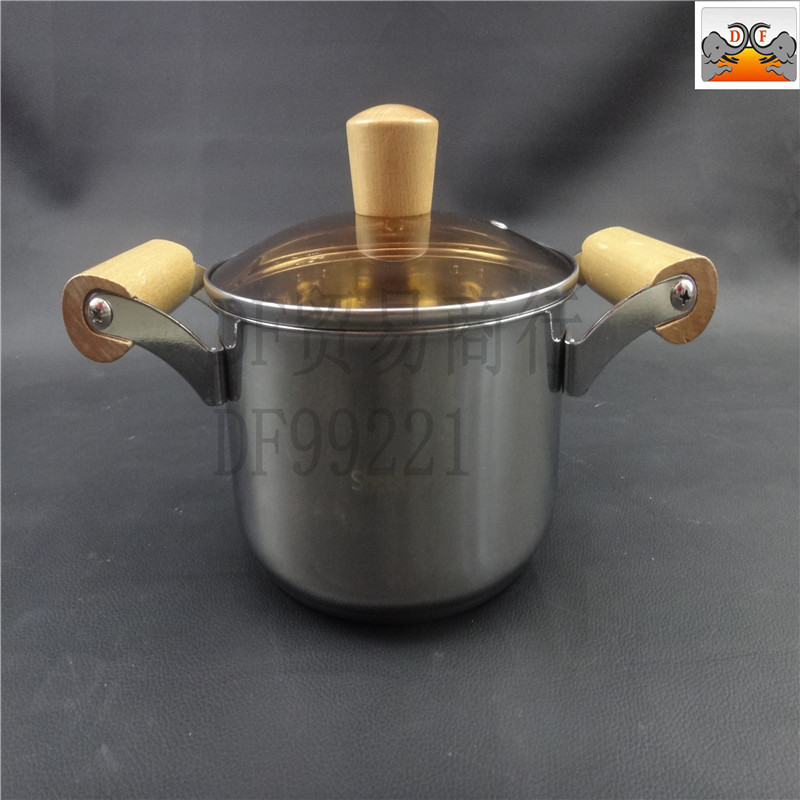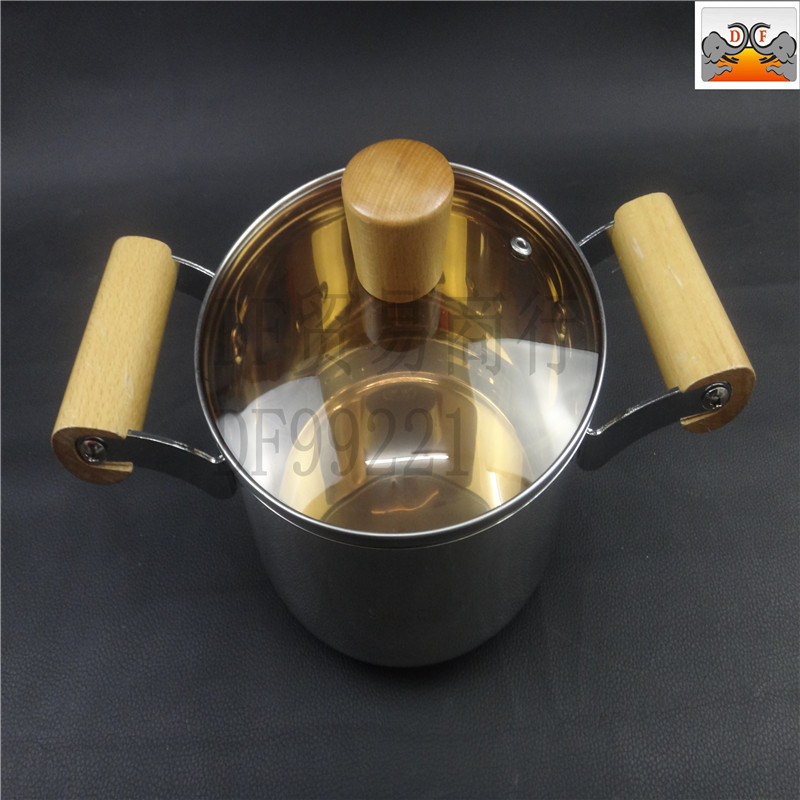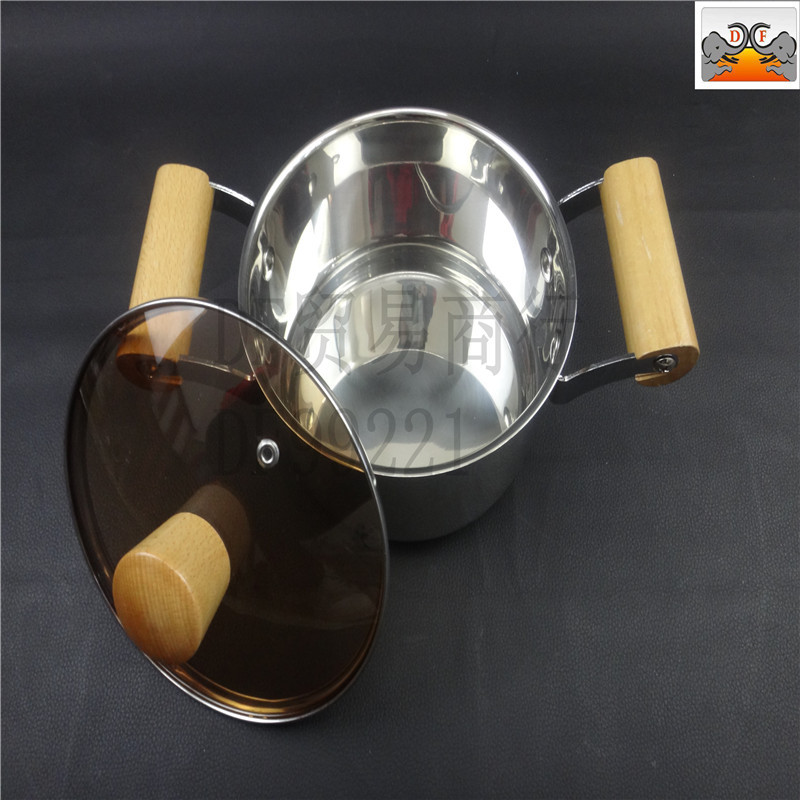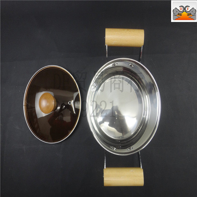 DF99221DF Trading House 鼎发餐具特厚茶色盖木柄不锈钢双柄汤锅