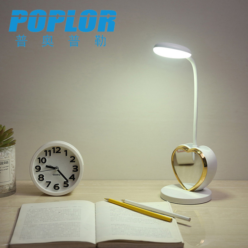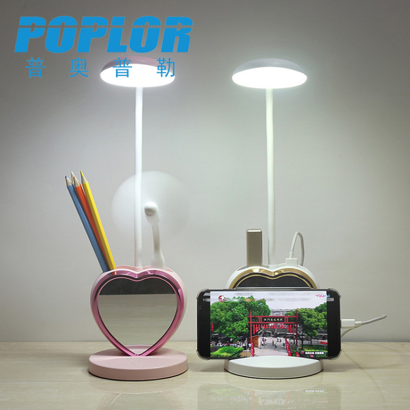 LED三段调光台灯 5W定制礼品学生台灯 带USB充电功能带镜子风扇