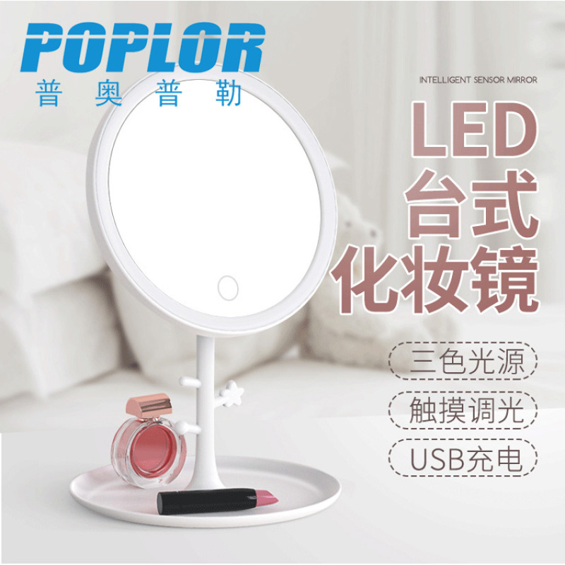 LED化妆镜台灯 5W定制礼品学生台灯 带充电功能带镜子调光台灯