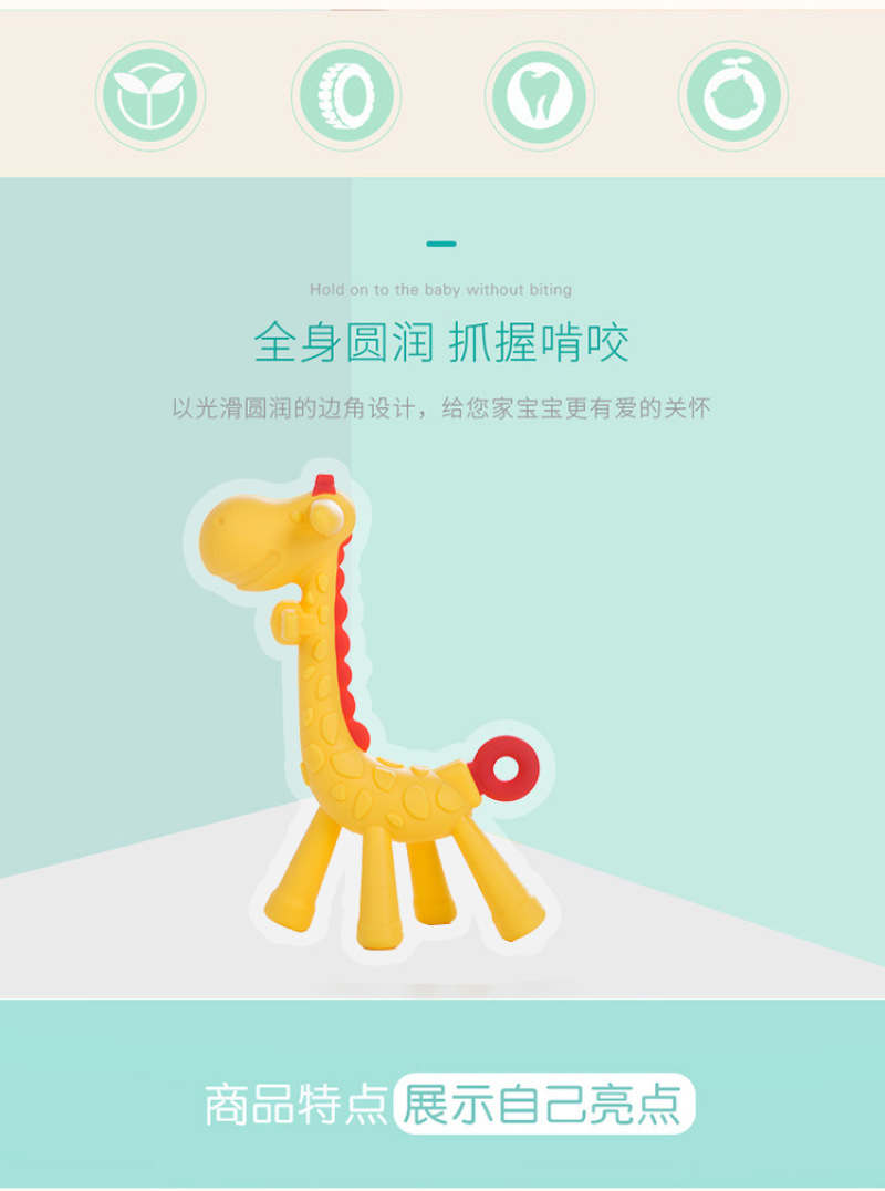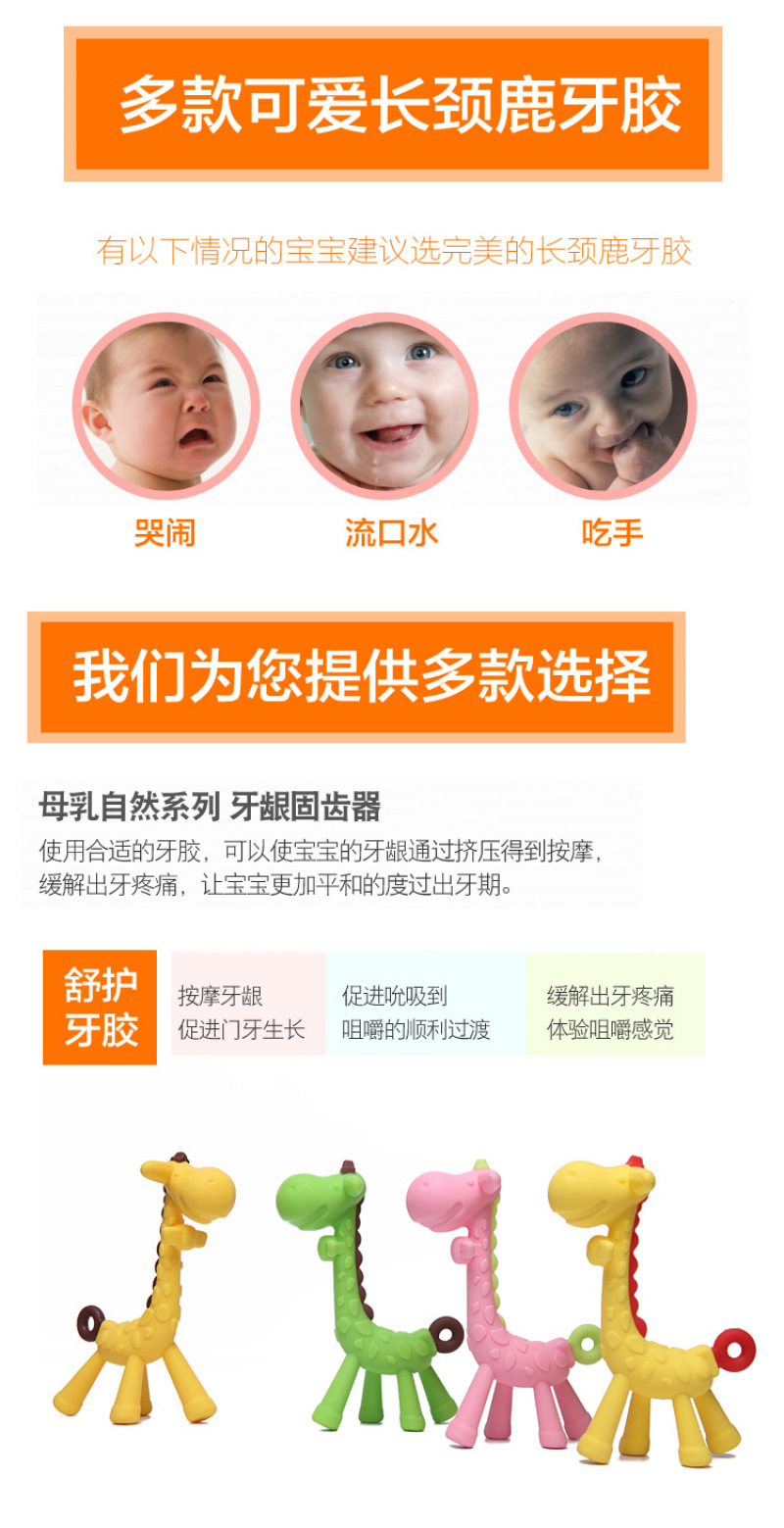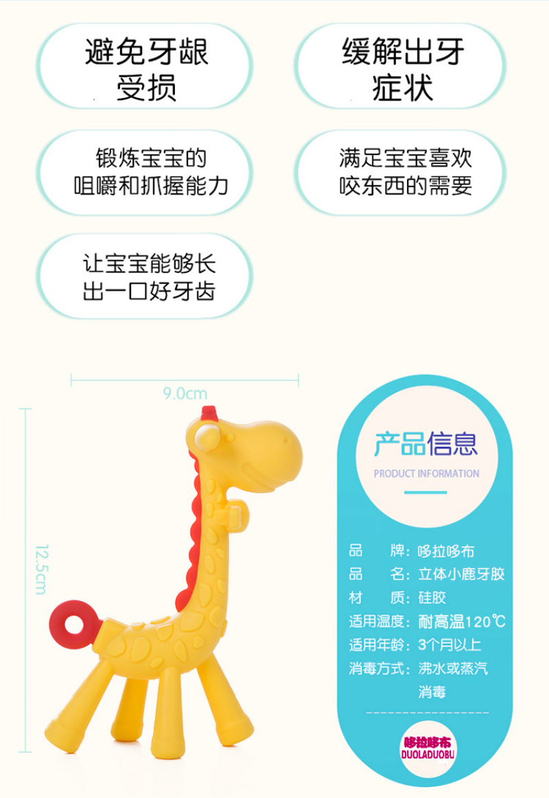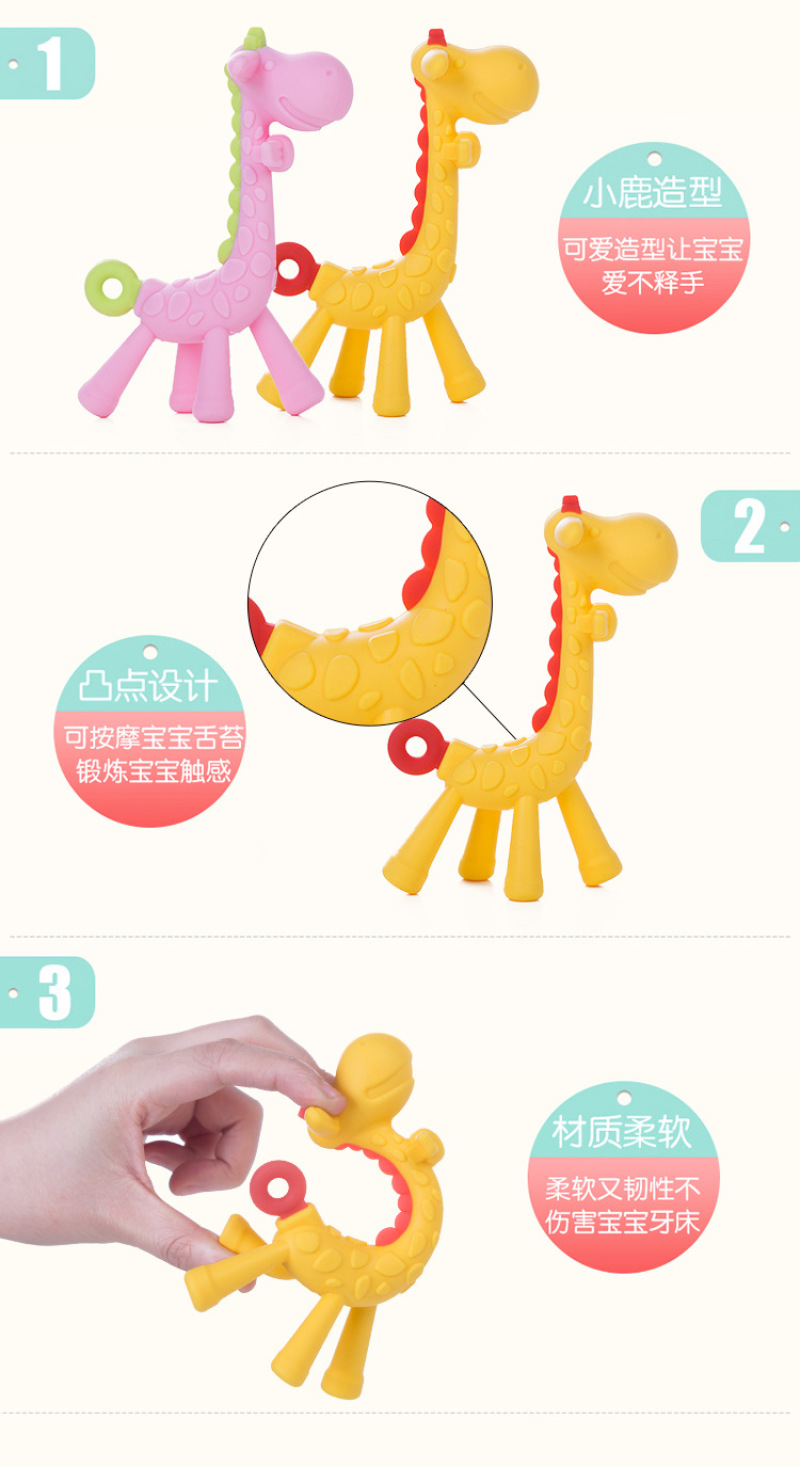母婴 婴儿牙胶全硅胶卡通小鹿牙胶磨牙玩具硅胶牙胶 磨牙棒咬咬乐