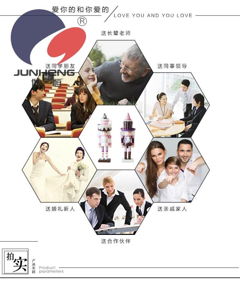 俊恒工艺创意25CM欧式少女心胡桃士兵糖果亮粉蛋糕人木偶胡桃夹子
