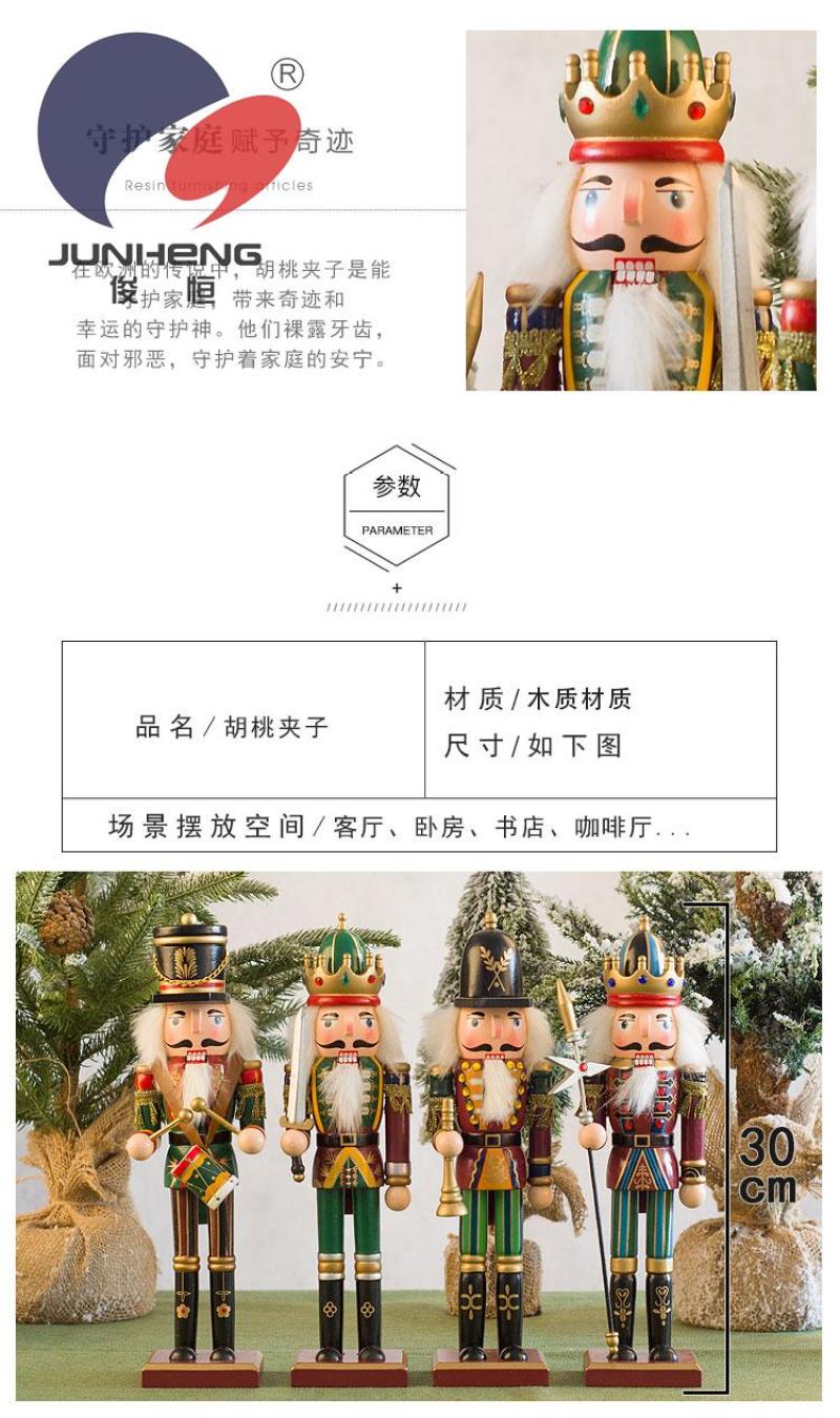 俊恒工艺胡桃夹子士兵经典木制木偶家居装饰摆件礼品圣诞小工艺品