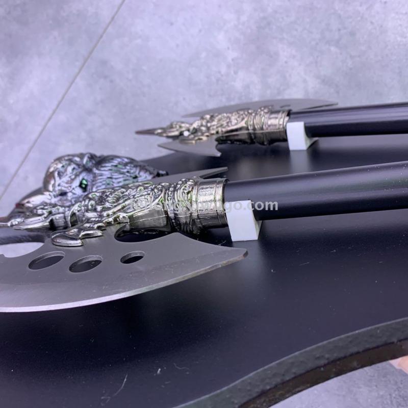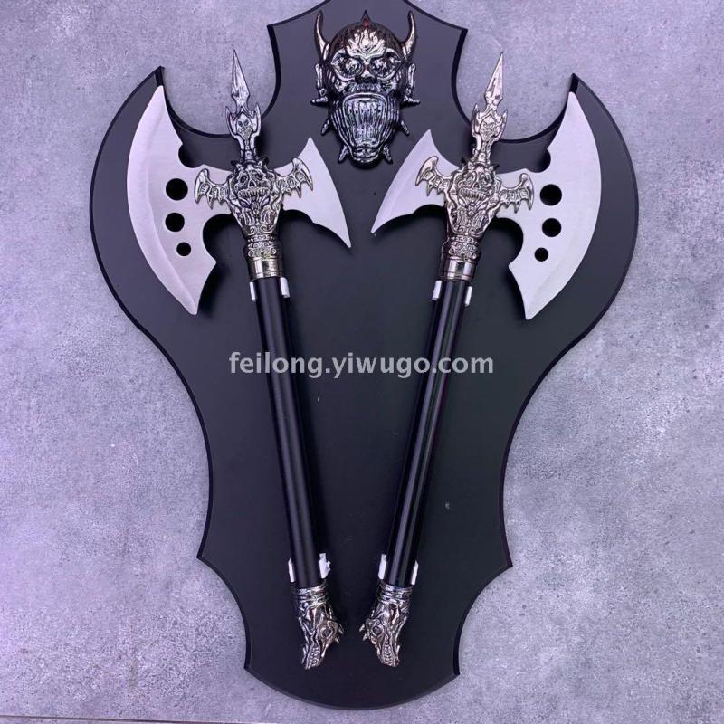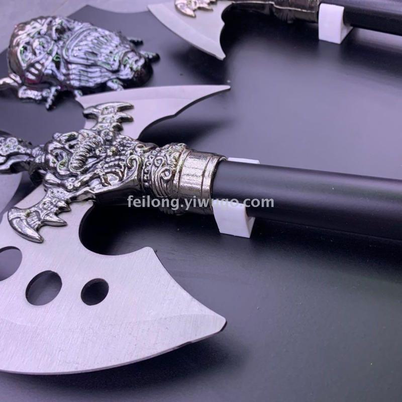 斧头配件:塑料+电镀 斧头斧杆:贴+贴纸 斧头刀片:不锈铁
