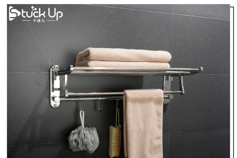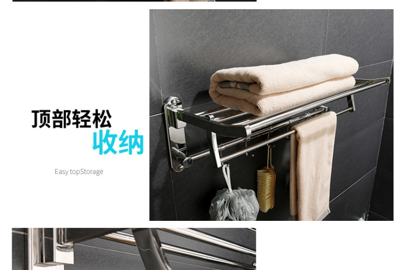 304不锈钢毛巾架可折叠架 酒店置物架打孔浴室挂件浴巾架厂家直销
