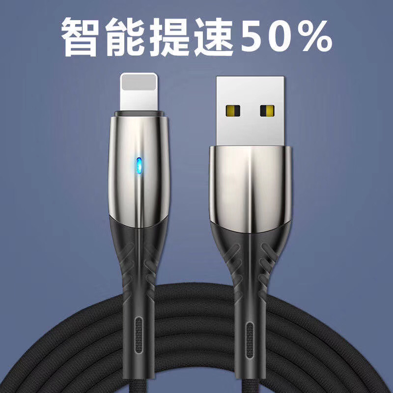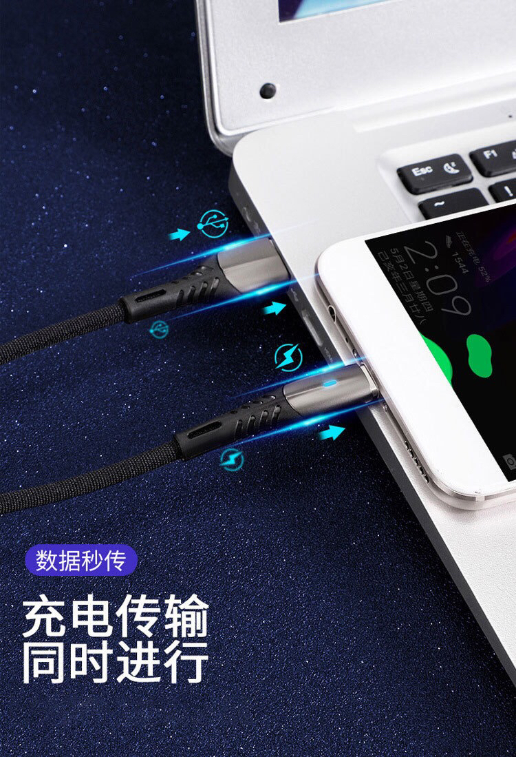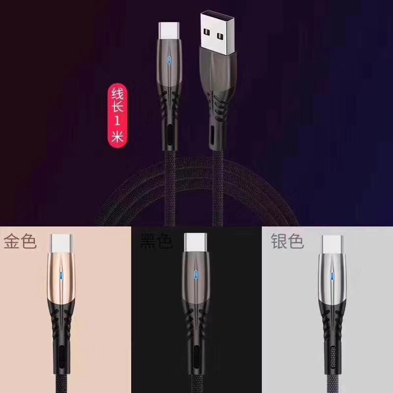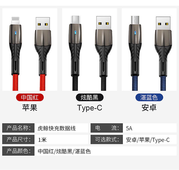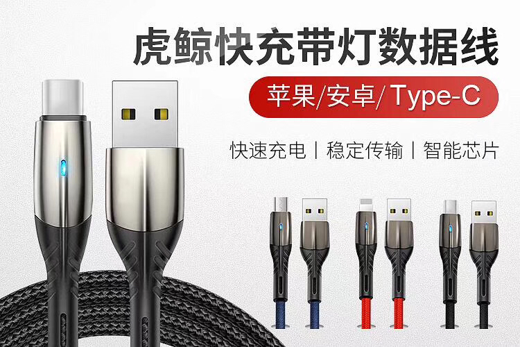 锌合金5A布编快充电线虎鲸带呼吸灯数据线 适用于安卓苹果 华为