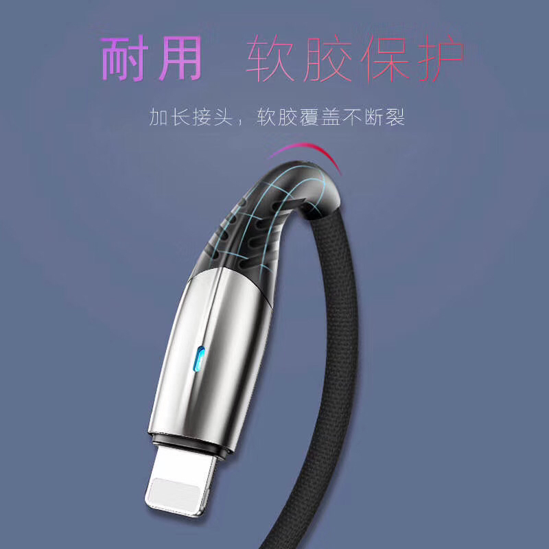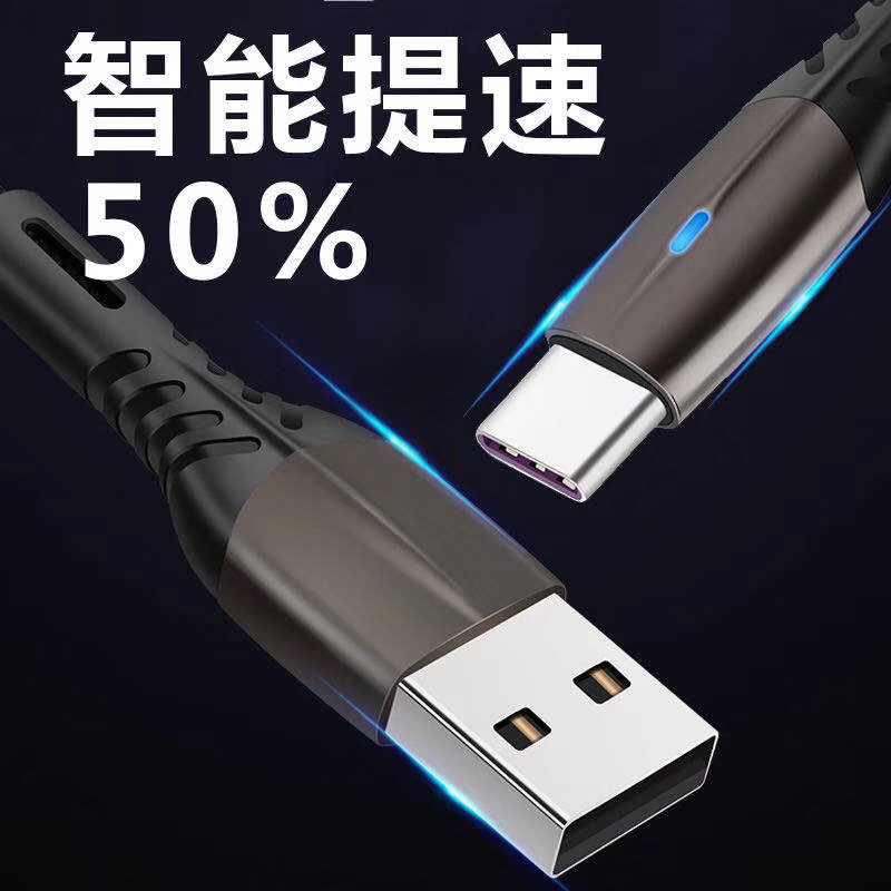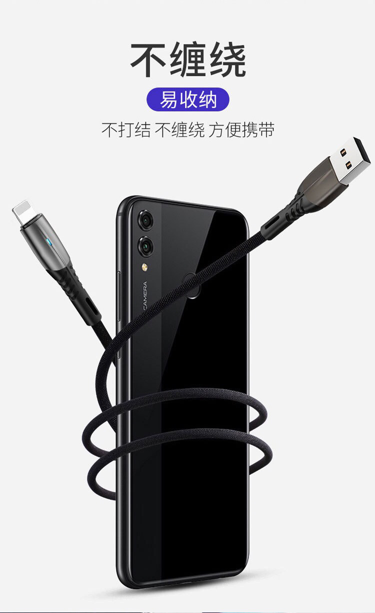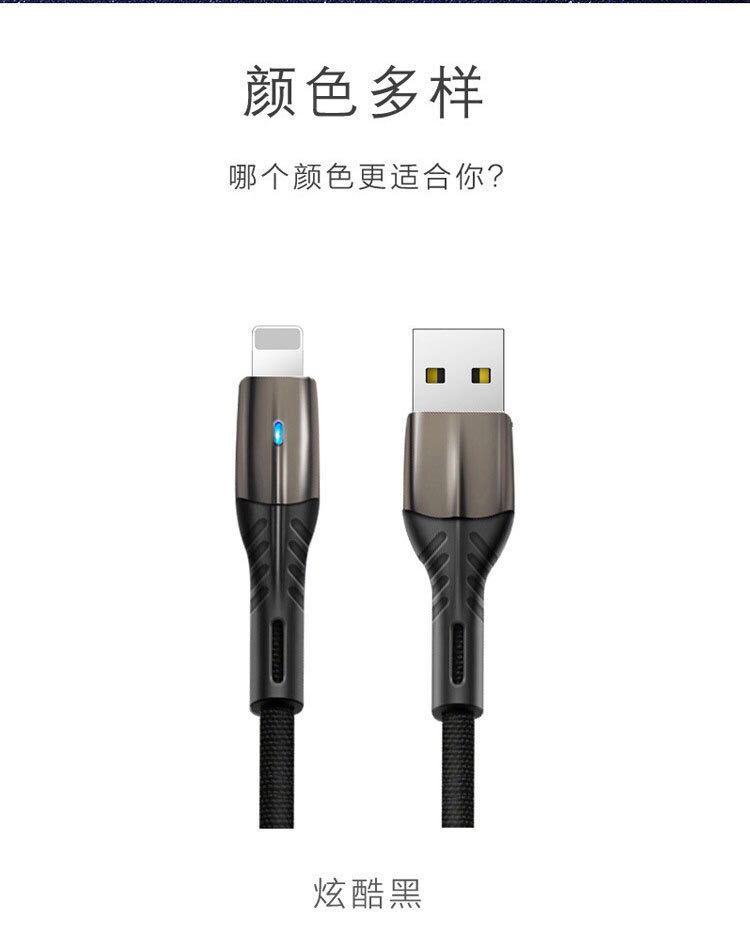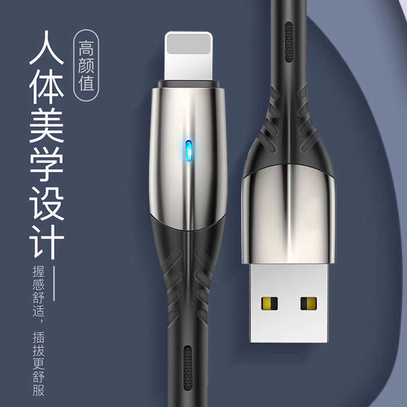 锌合金5A布编快充电线虎鲸带呼吸灯数据线 适用于安卓苹果 华为