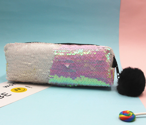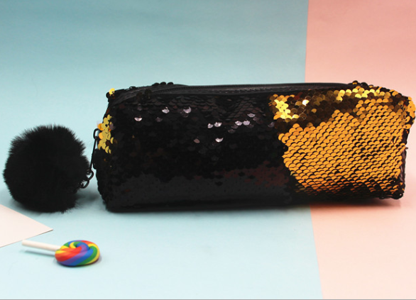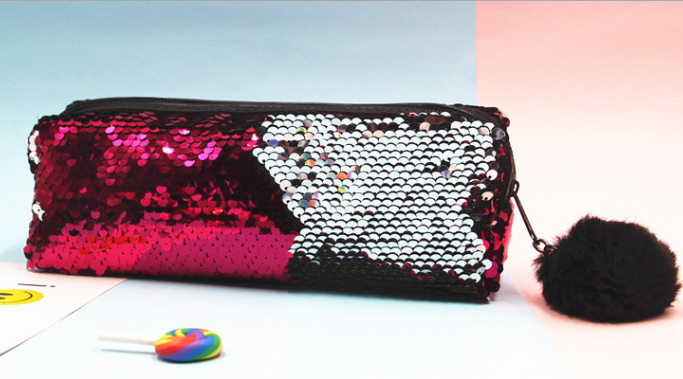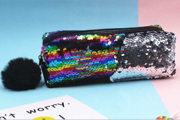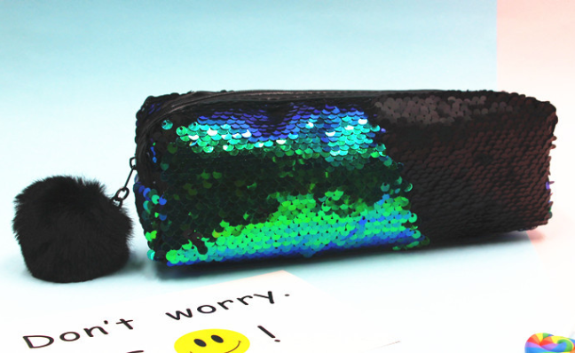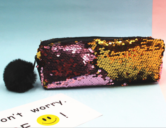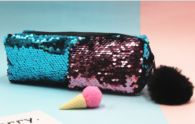 亮片笔袋毛球铅笔袋鱼鳞亮片文具袋学生文具盒