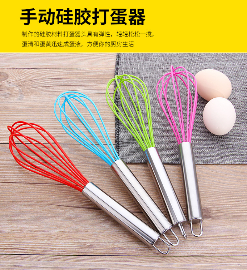 现货厨房小工具10寸硅胶打蛋器手动鸡蛋搅拌器创意手摇搅蛋器