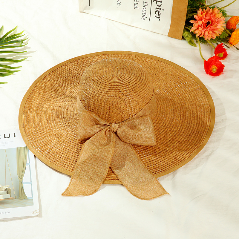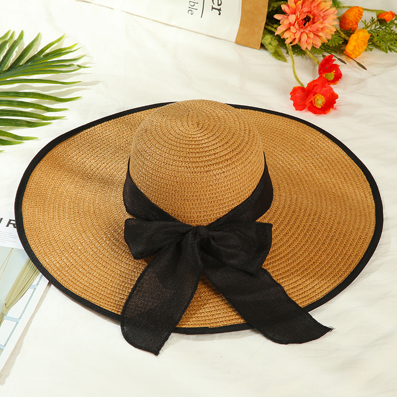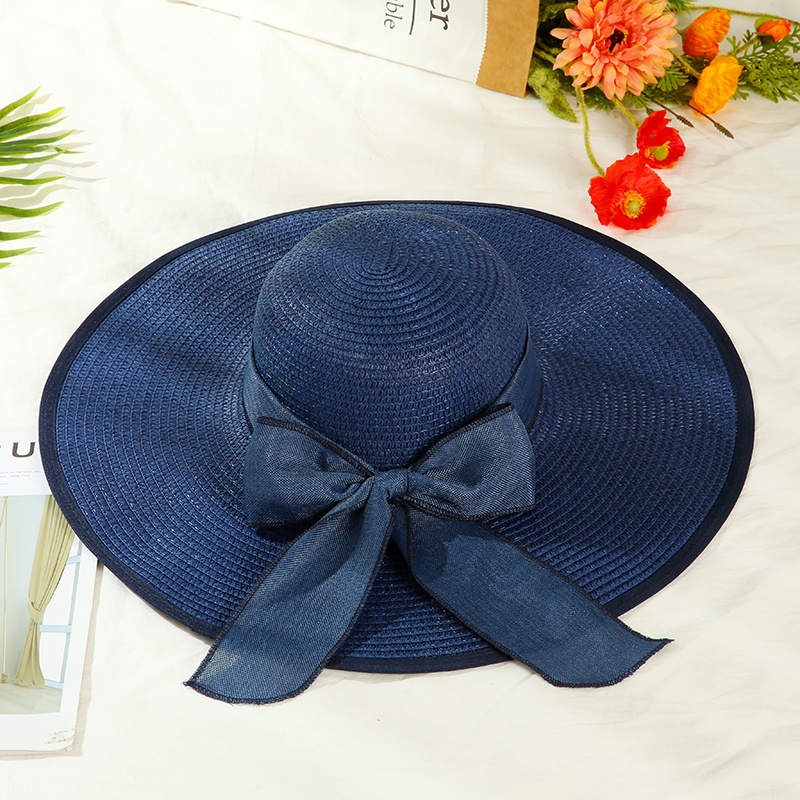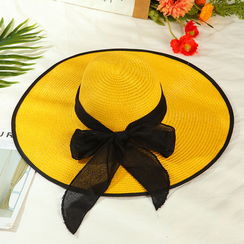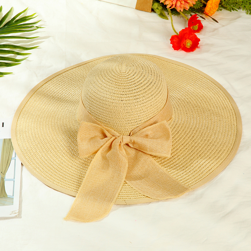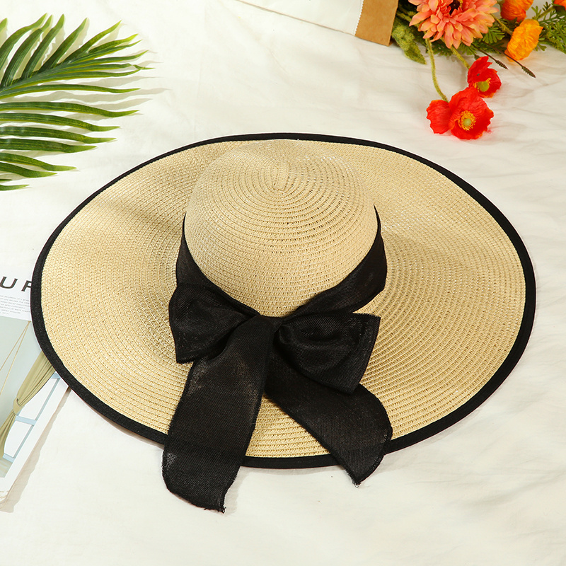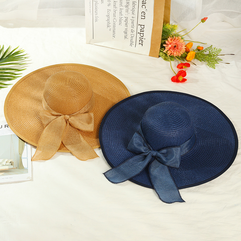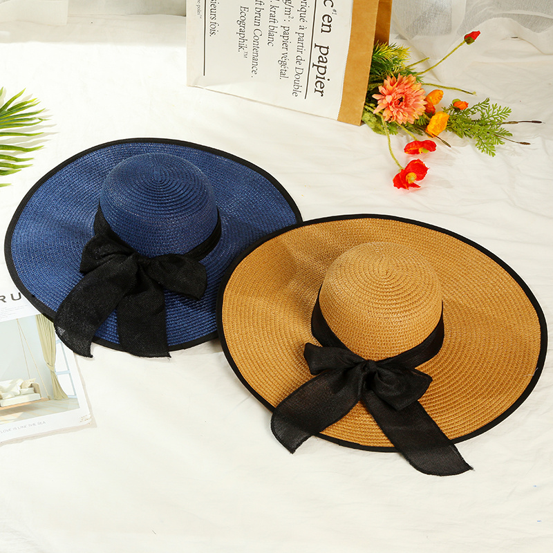 夏季大檐帽草帽蝴蝶结遮阳帽防紫外线