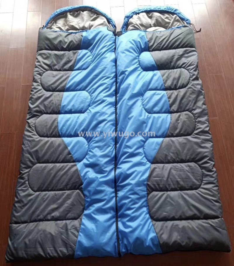 2KG高级冬季保暖加厚两边竖拼拼色互拼成人信封情侣带帽睡袋