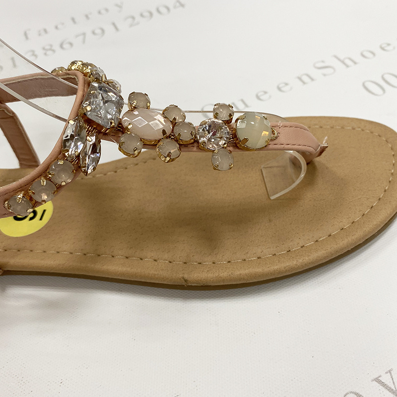 夏季韩版女凉波西米亚风格时尚夹脚女镶钻平底凉鞋外贸现sandals