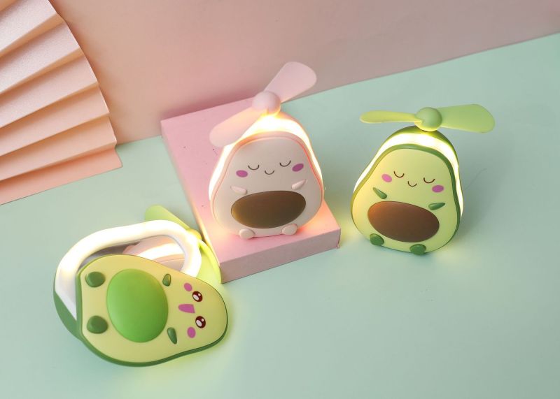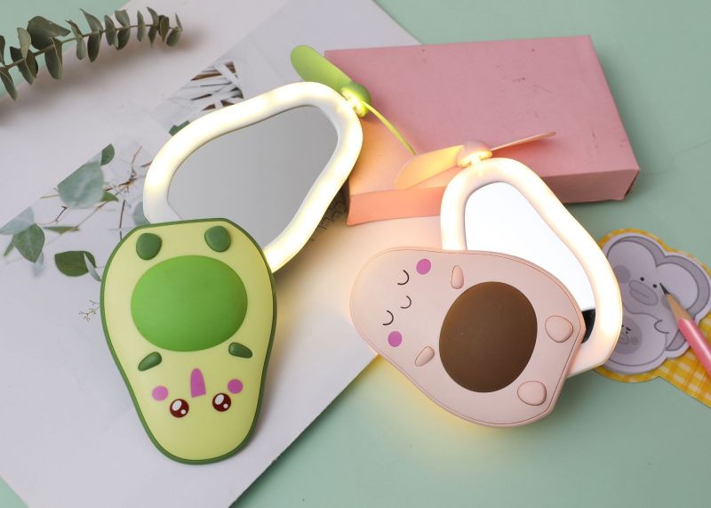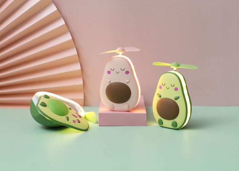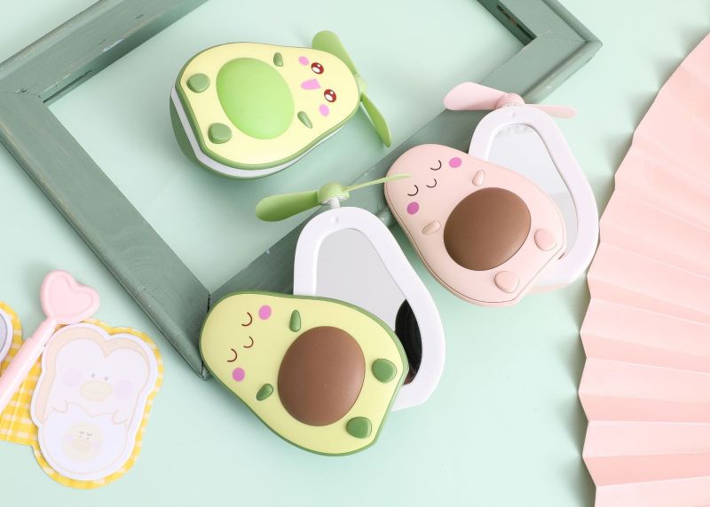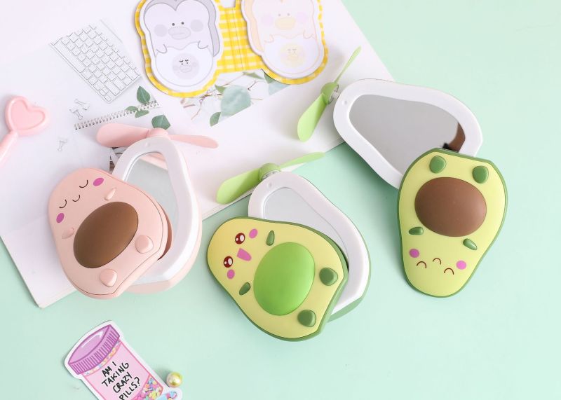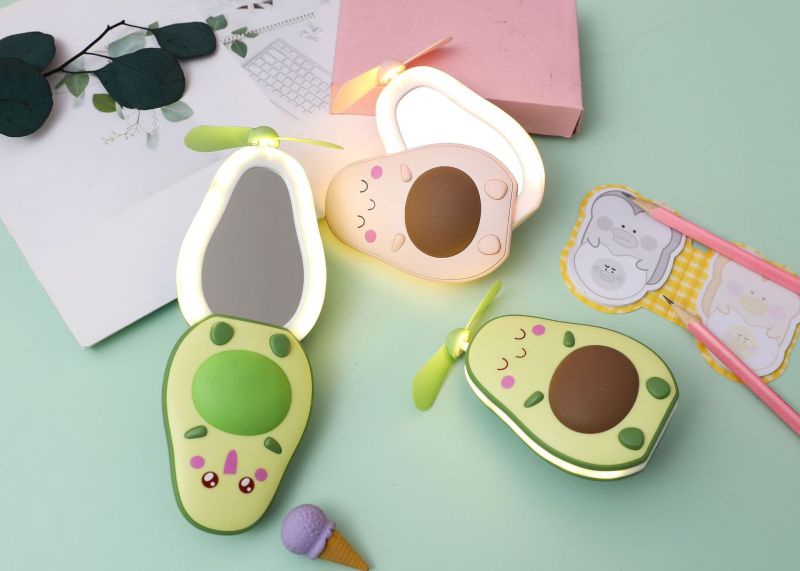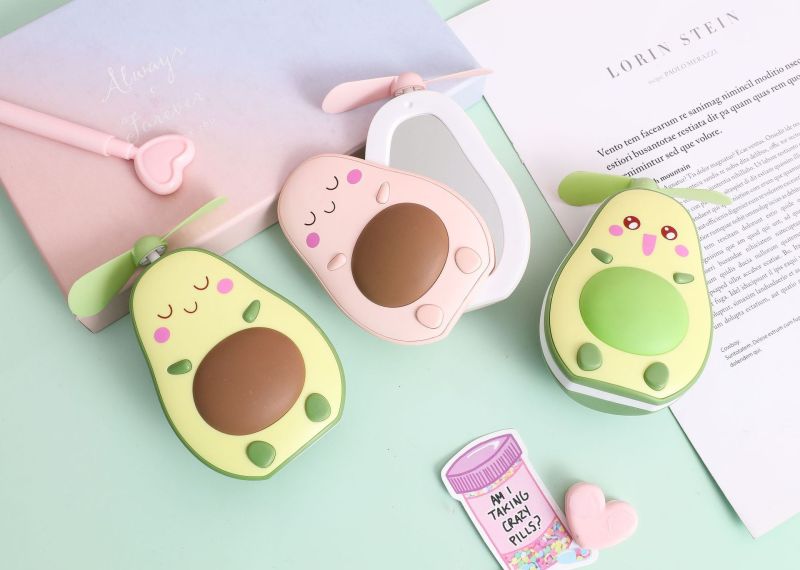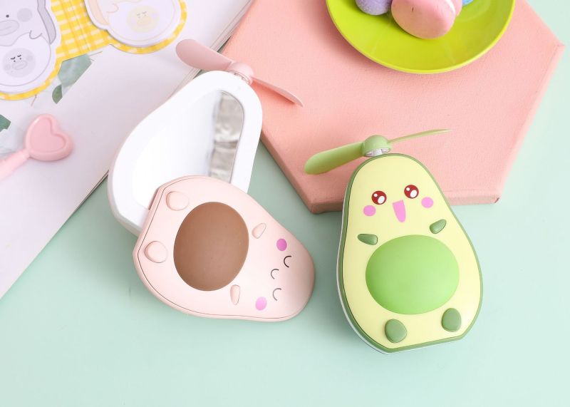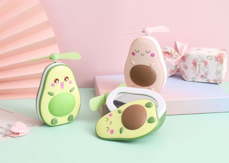 夏季创意牛油果风扇 led带灯补妆镜手持小风扇usb充电口袋水果扇