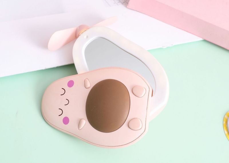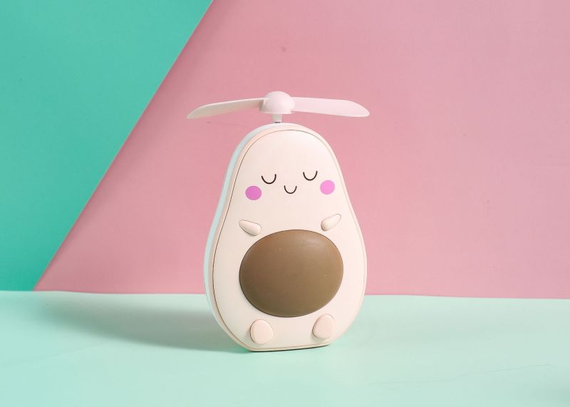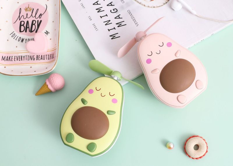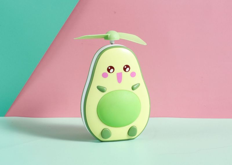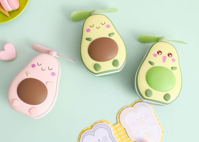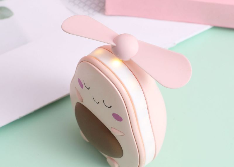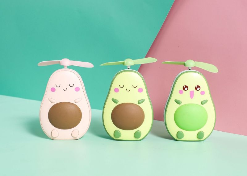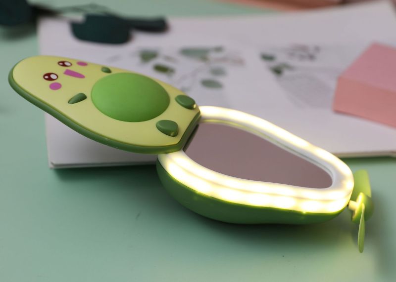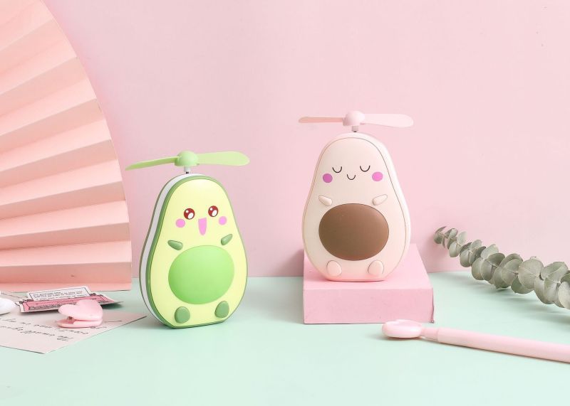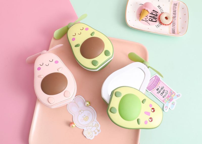 夏季创意牛油果风扇 led带灯补妆镜手持小风扇usb充电口袋水果扇