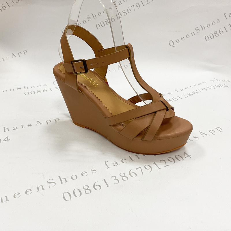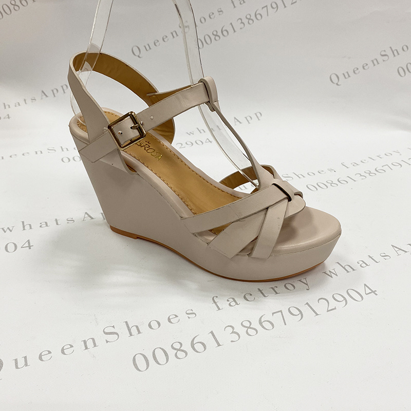 sandals现货坡跟凉鞋4色可选夏季外贸定制款女凉高跟女鞋纯色