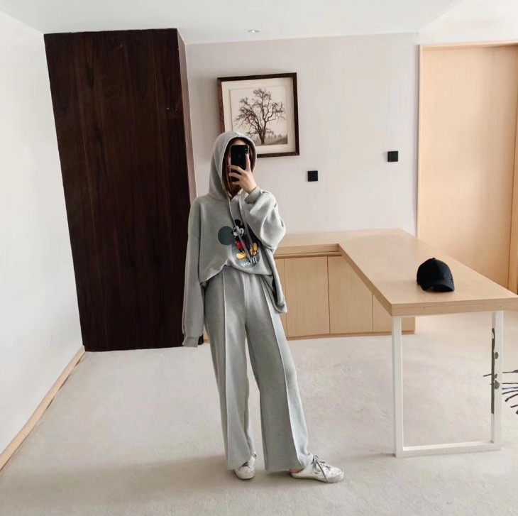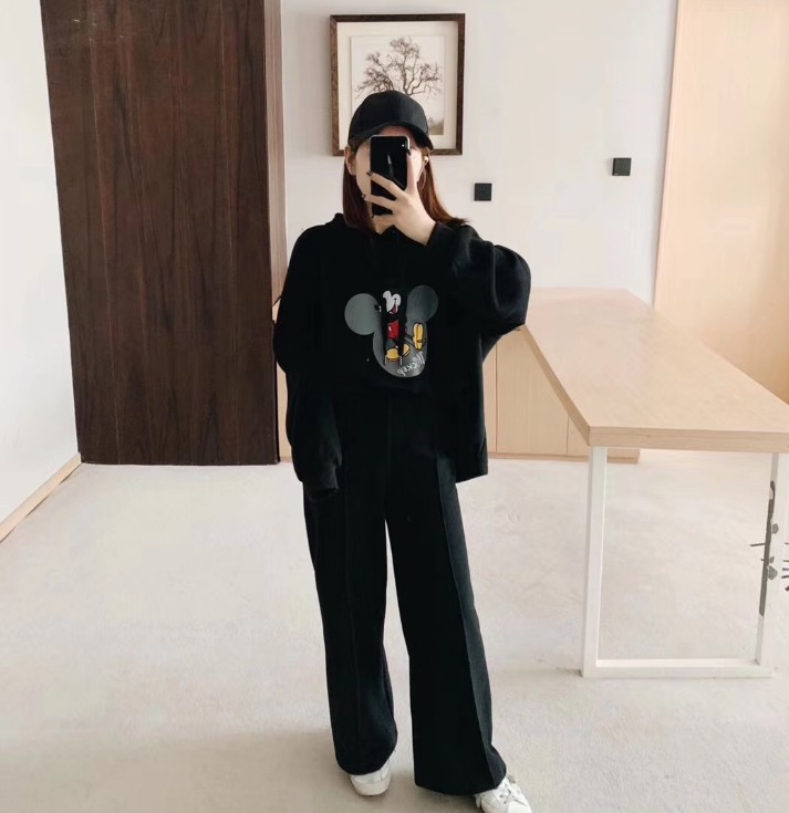 东大门韩版米奇卡通套装宽松连帽卫衣运动阔腿裤两件套女老鼠