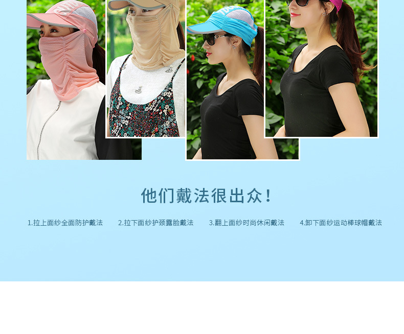 防晒帽子户外防蚊口罩蒙面遮阳帽百搭便捷可折叠骑车太阳帽女夏天