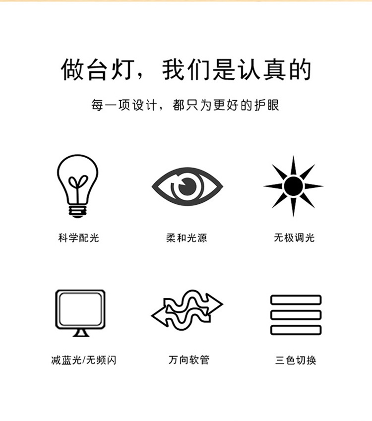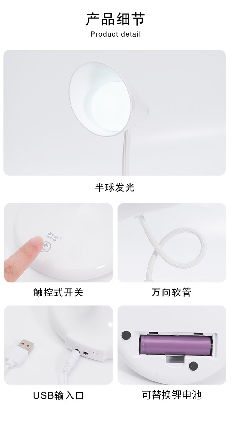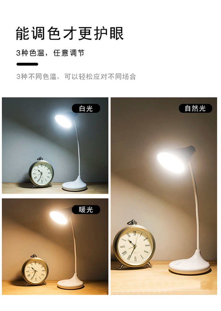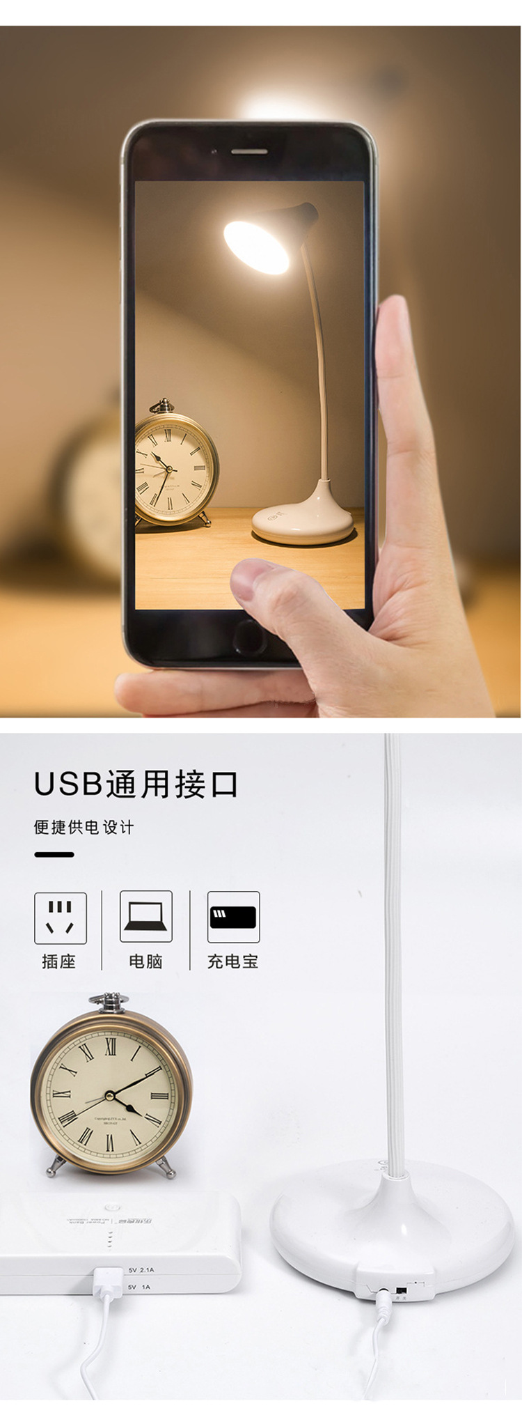 护眼台灯无极调光触摸三色光源USB充电学生宿舍卧室酒店