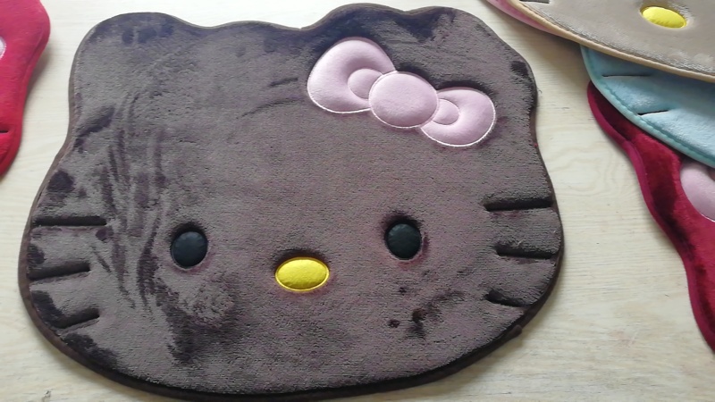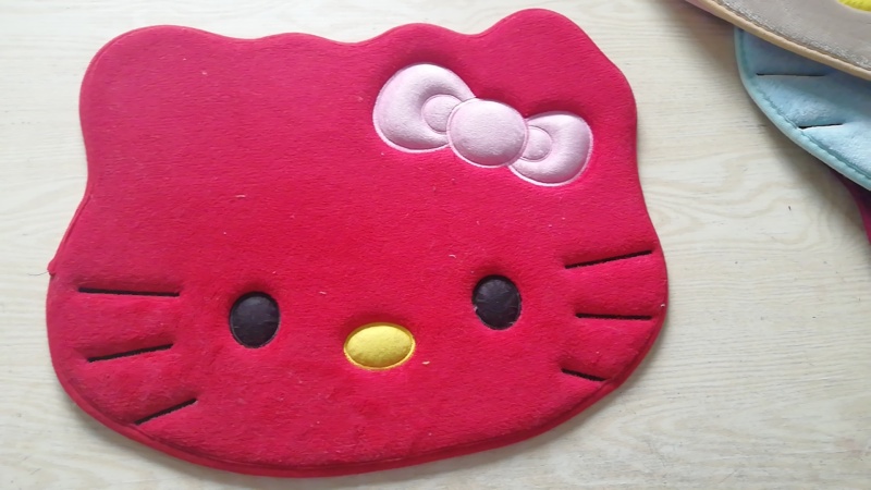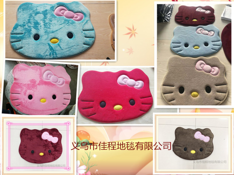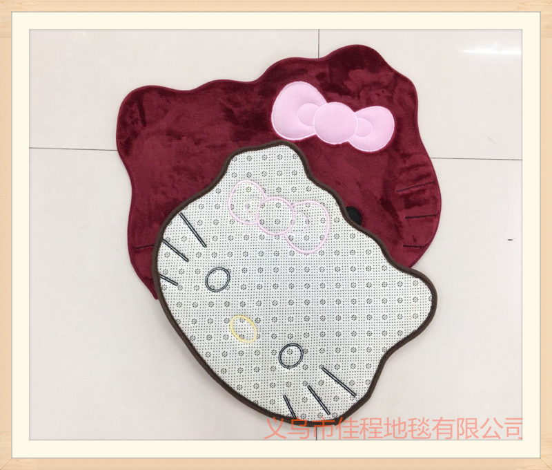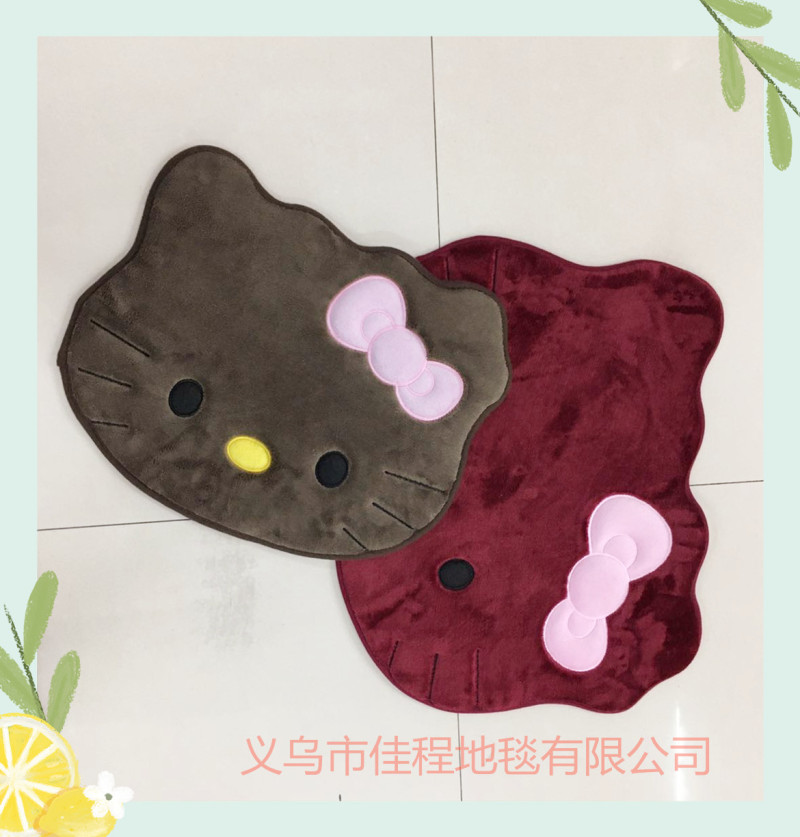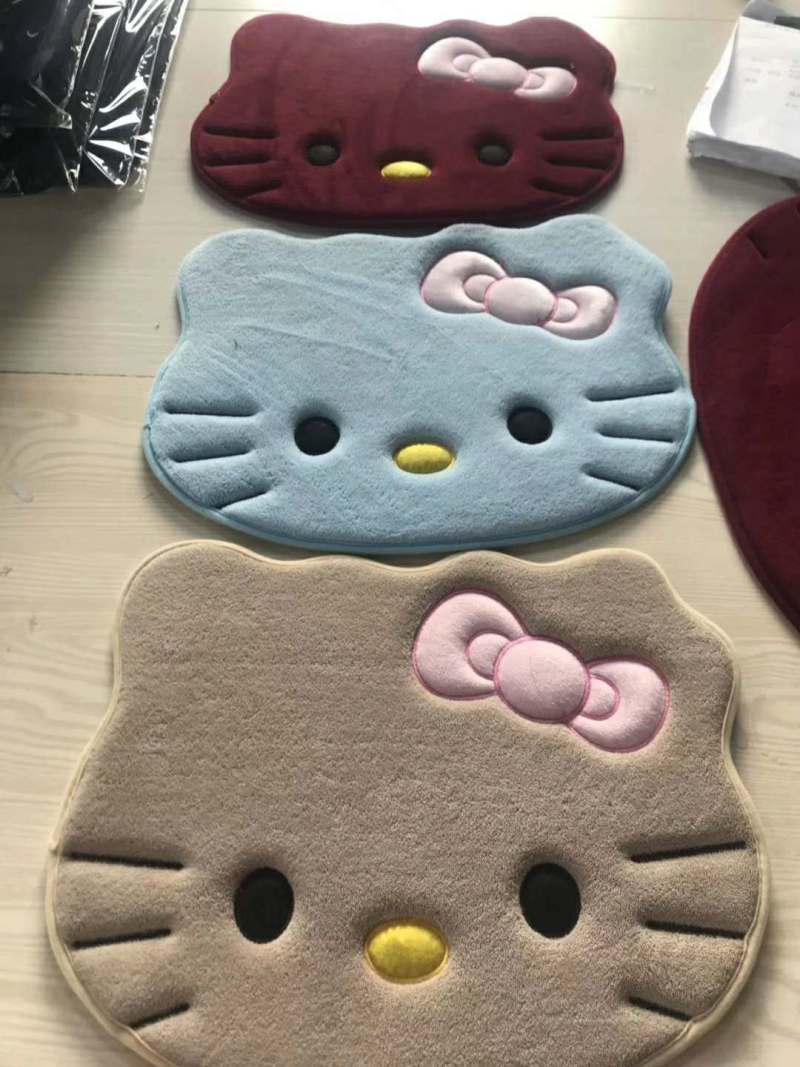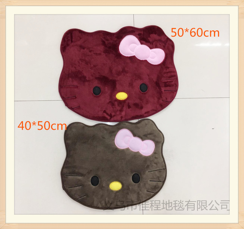 新款点塑底法兰绒绣花可爱猫咪垫 防滑垫 KT猫垫 门垫 猫咪地垫尺寸40*50cm 质量好 有多个颜色可混 一件50-100片装 编织袋包装 尺寸有40*50cm/50*60cm