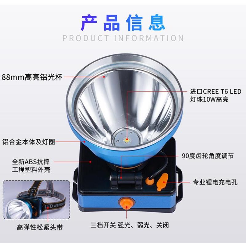 铝合金大灯杯88mm 户外头灯送头带强光远射野营夜钓白光