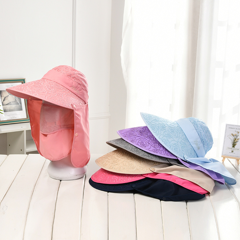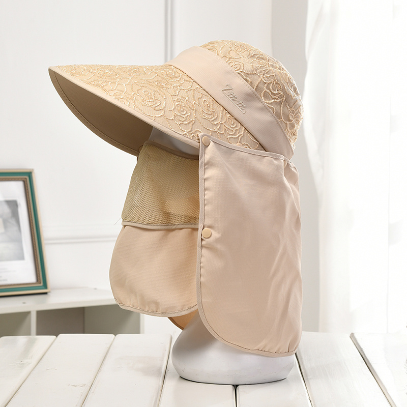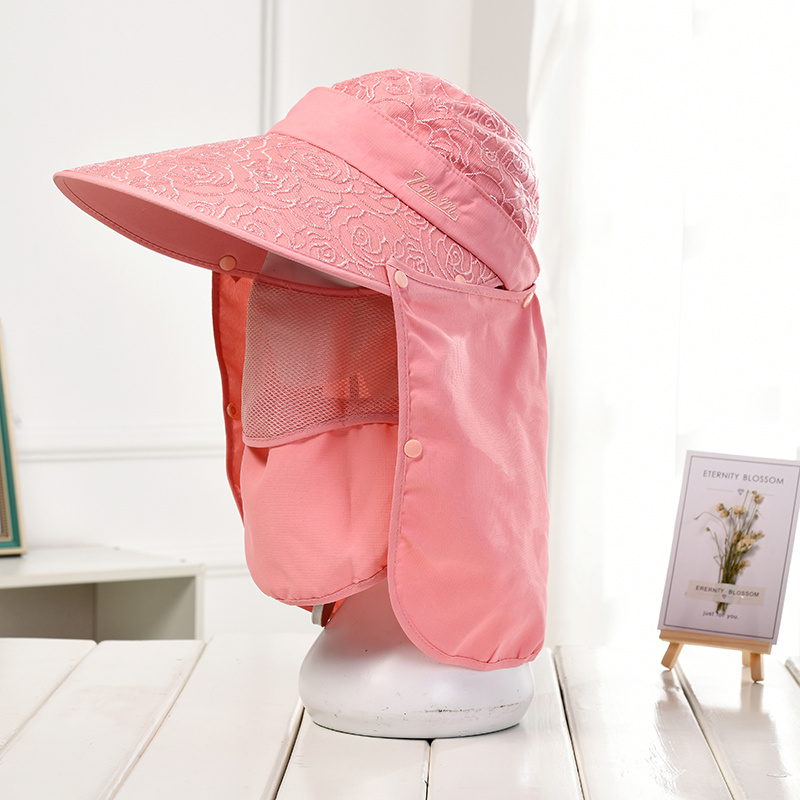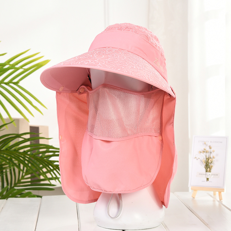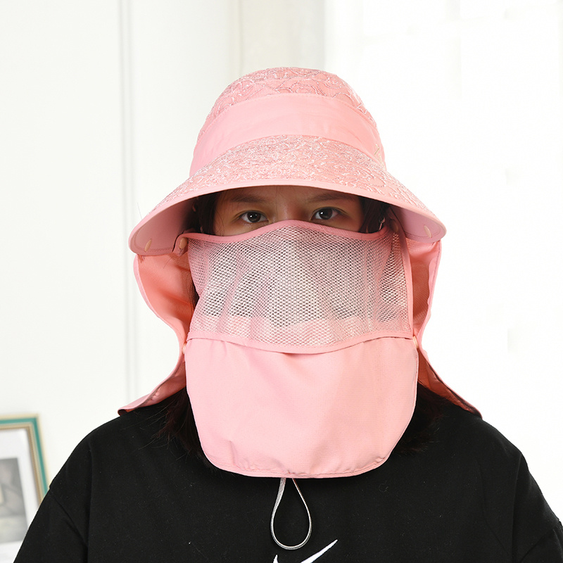 遮阳帽子女夏防晒紫外线面罩带面纱遮脸骑车防风大帽檐