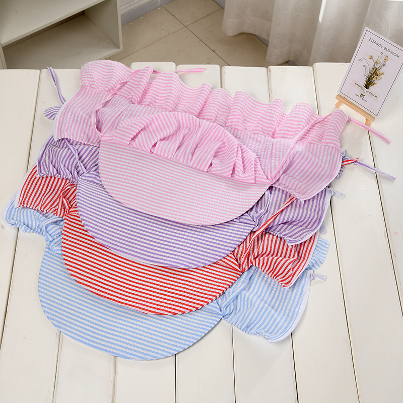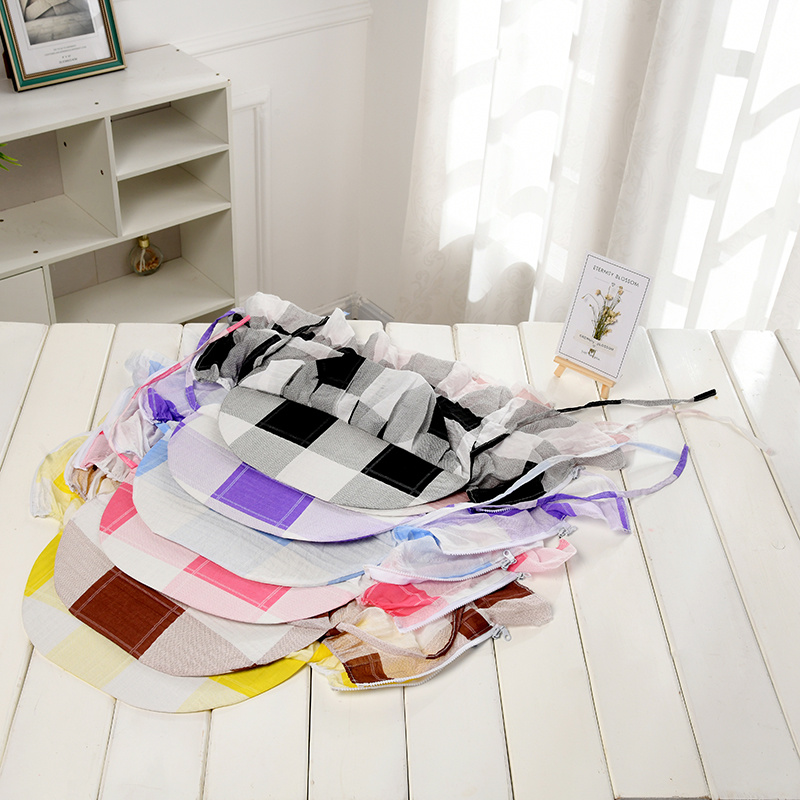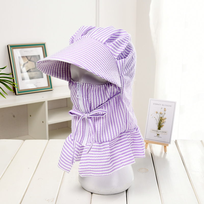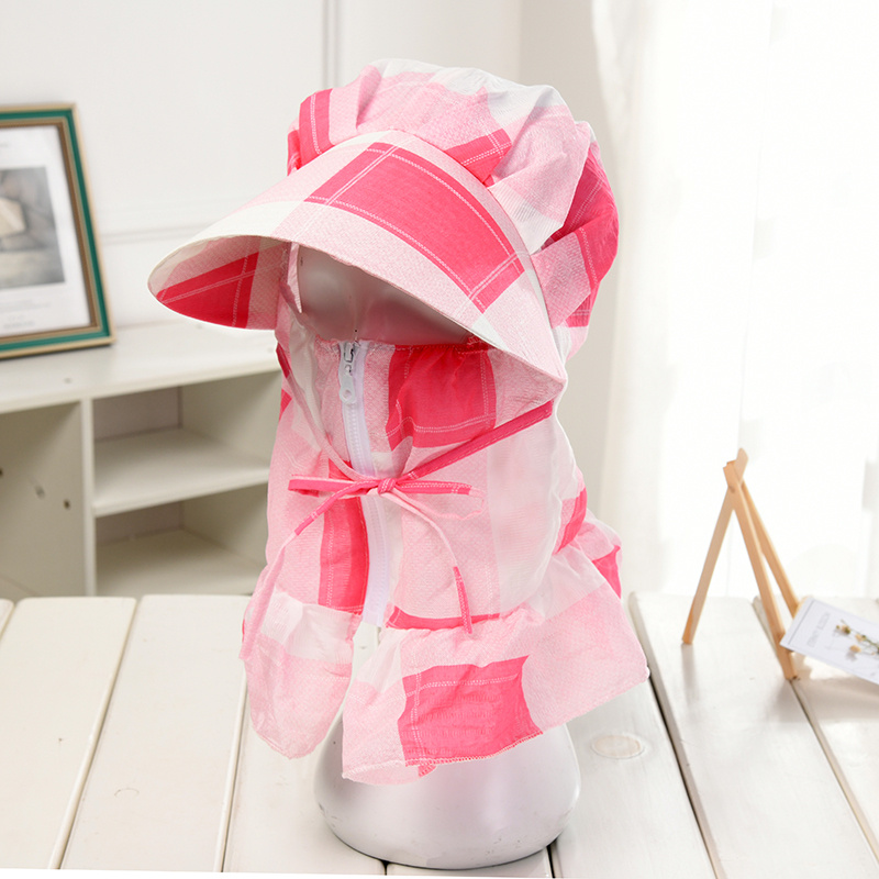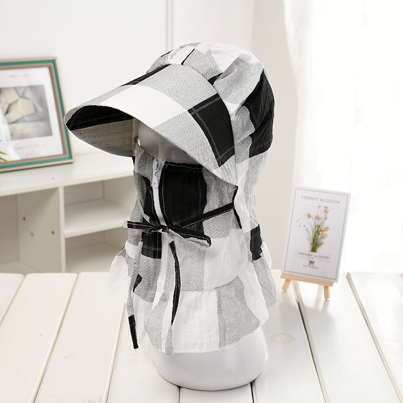 条纹格子帽子防护帽护脸护脖户外防紫外线