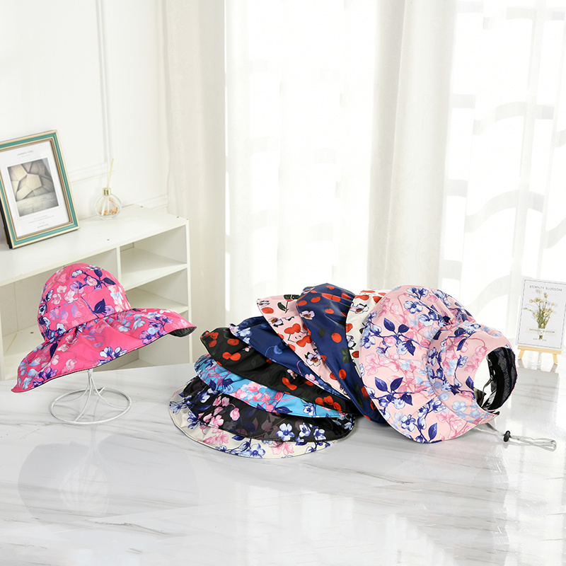 夏季防晒大檐帽花帽子户外防紫外线帽子